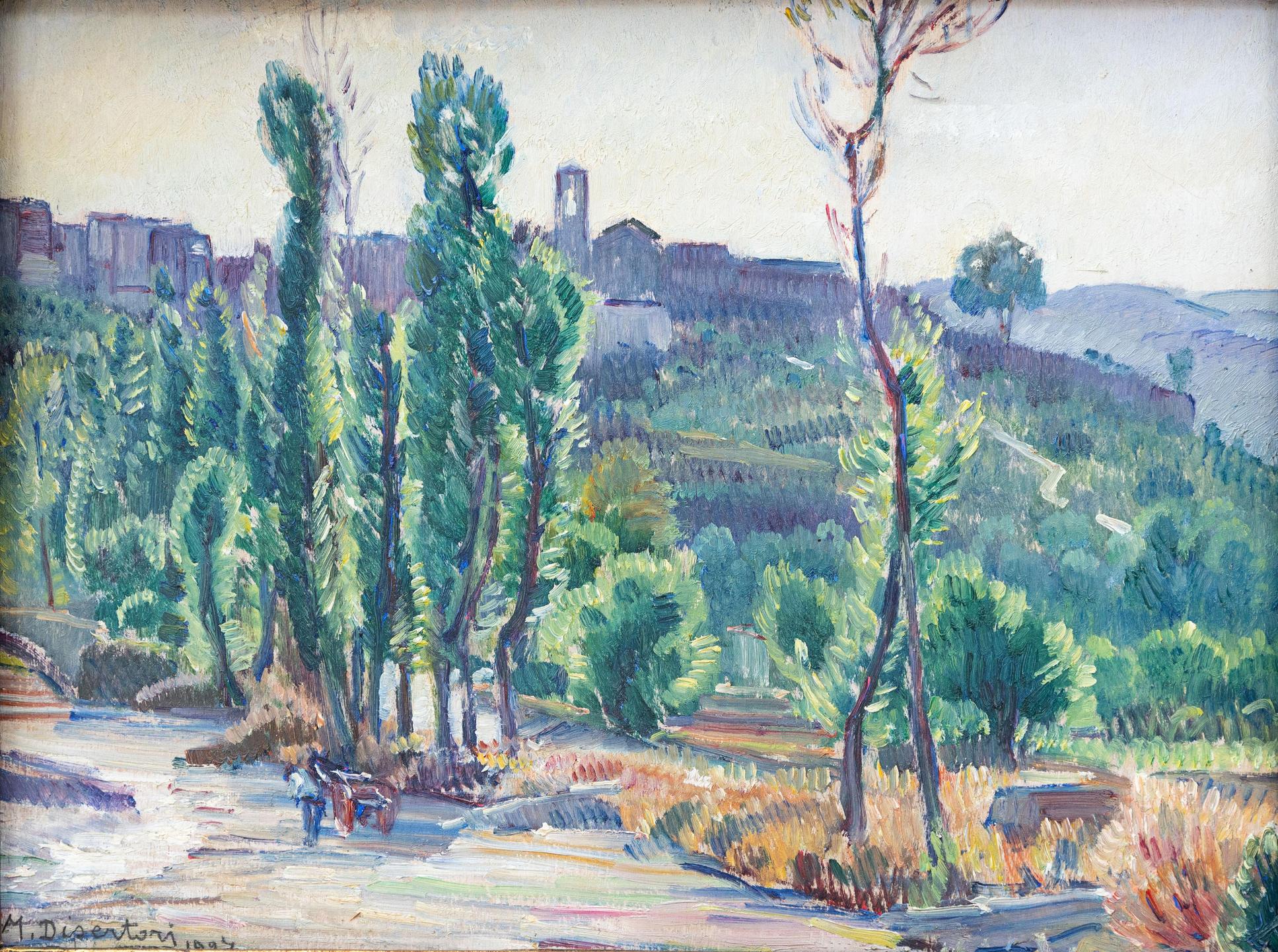 - Mario Disertori nacque a Trento nel 1895 e si avvicinò alla pittura giovanissimo, sostenuto dal riconoscimento del suo talento da parte di alcuni artisti dell’epoca. Nel 1912 si iscrisse all’Accademia di Belle Arti di Venezia, dove sviluppò un linguaggio sensibile al colore e alla luce. L’anno seguente partecipò alla sua prima mostra insieme a un gruppo di giovani pittori che cercavano nuove strade espressive, e da quel momento iniziò un percorso di crescita costante.Dopo un periodo di studi a Firenze, città che contribuì a raffinare il suo senso della forma e dell’armonia, Disertori si trasferì a Padova nel 1922 per insegnare pittura presso la scuola d’arte locale. Divise per molti anni la sua attività tra Padova e Venezia, alternando l’insegnamento alla ricerca personale. Questa doppia appartenenza gli permise di fondere due approcci: la misura e la struttura della tradizione toscana con la luminosità e le atmosfere diafane della pittura veneta.La parte più significativa della sua produzione è legata al paesaggio. Disertori amava dipingere all’aria aperta e rappresentare colline, campagne, borghi silenziosi, rive di laghi e tratti della Riviera ligure. La sua attenzione si concentrava sulle variazioni della luce, sui cambiamenti delle stagioni, sui passaggi tonali che suggeriscono quiete e profondità. Nel tempo la sua tavolozza si fece più chiara e limpida, con colori luminosi e ben modulati che caratterizzano le opere della maturità.Accanto ai paesaggi realizzò nature morte, scorci rurali e qualche figura, mantenendo sempre una predilezione per l’equilibrio compositivo e per un uso del colore che trasmette sobrietà e serenità. Partecipò a numerose esposizioni, incluse diverse edizioni della Biennale di Venezia e varie rassegne regionali, consolidando il suo nome nel panorama artistico del Triveneto.Mario Disertori morì a Padova nel 1980.