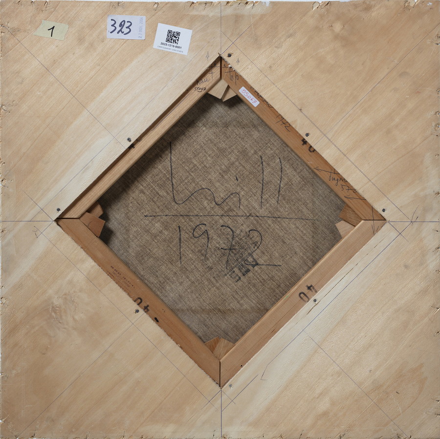 L'opera è accompagnata da autentica dell'artista su fotografia e da certificato di provenienza a cura della Galleria Lorenzelli, Milano