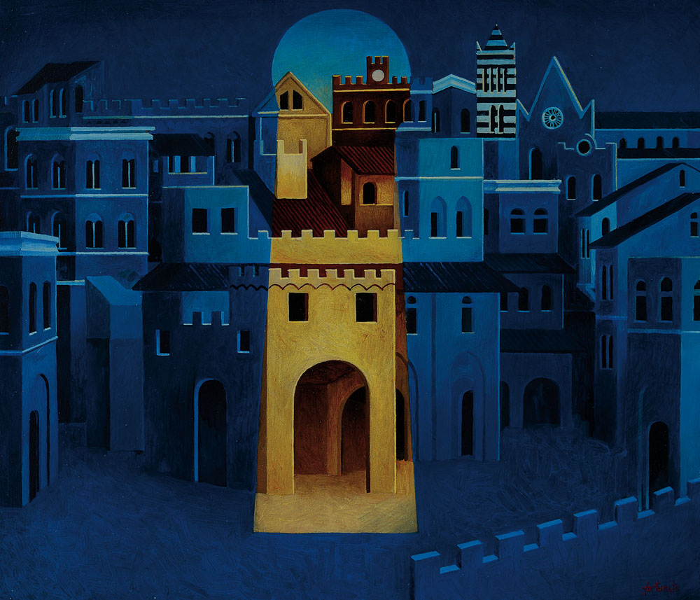 FORTUNATO FRANCO Roma 06/12/1946Città segretatempera e olio su tela cm....