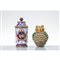 Vaso da farmacia ed un vaso a forma di gufo in ceramica smaltata e decorata (usure).