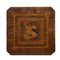 Tavolino Sorrentino in legno di noce, tarsie in bosso e legno esotico a disegno geometrico e nella parte centrale "San Giorgio che uccide il drago".
