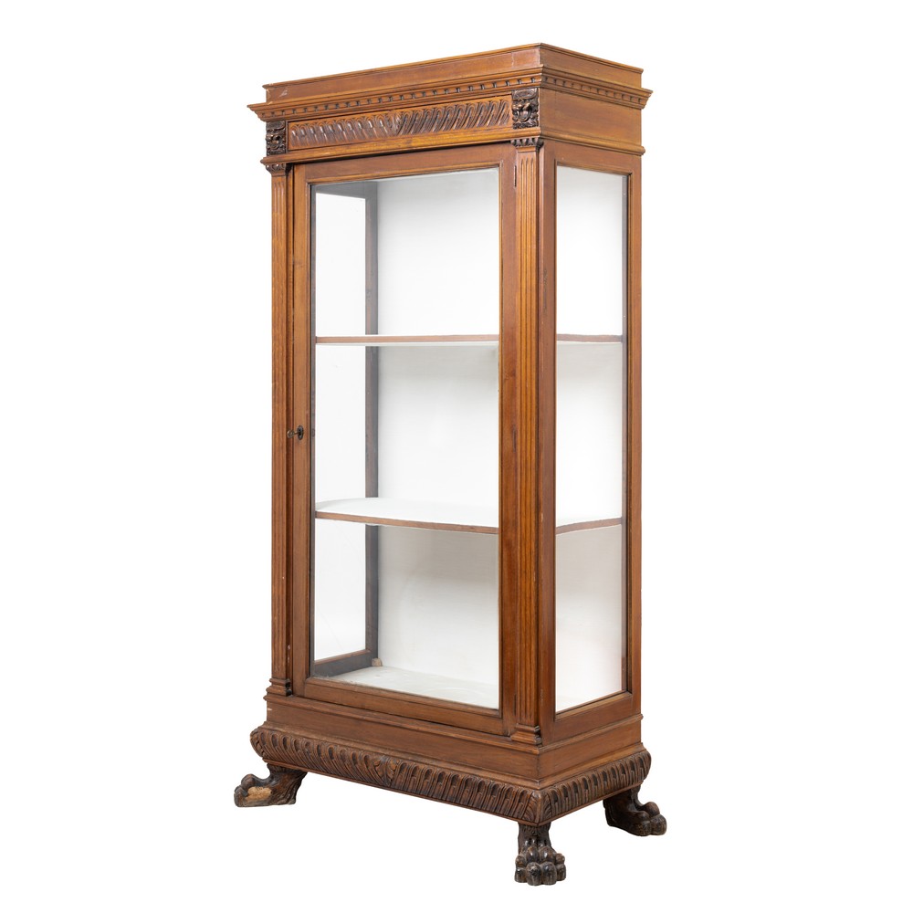Vetrina a giorno ad un'anta in stile rinascimentale in legno di noce.