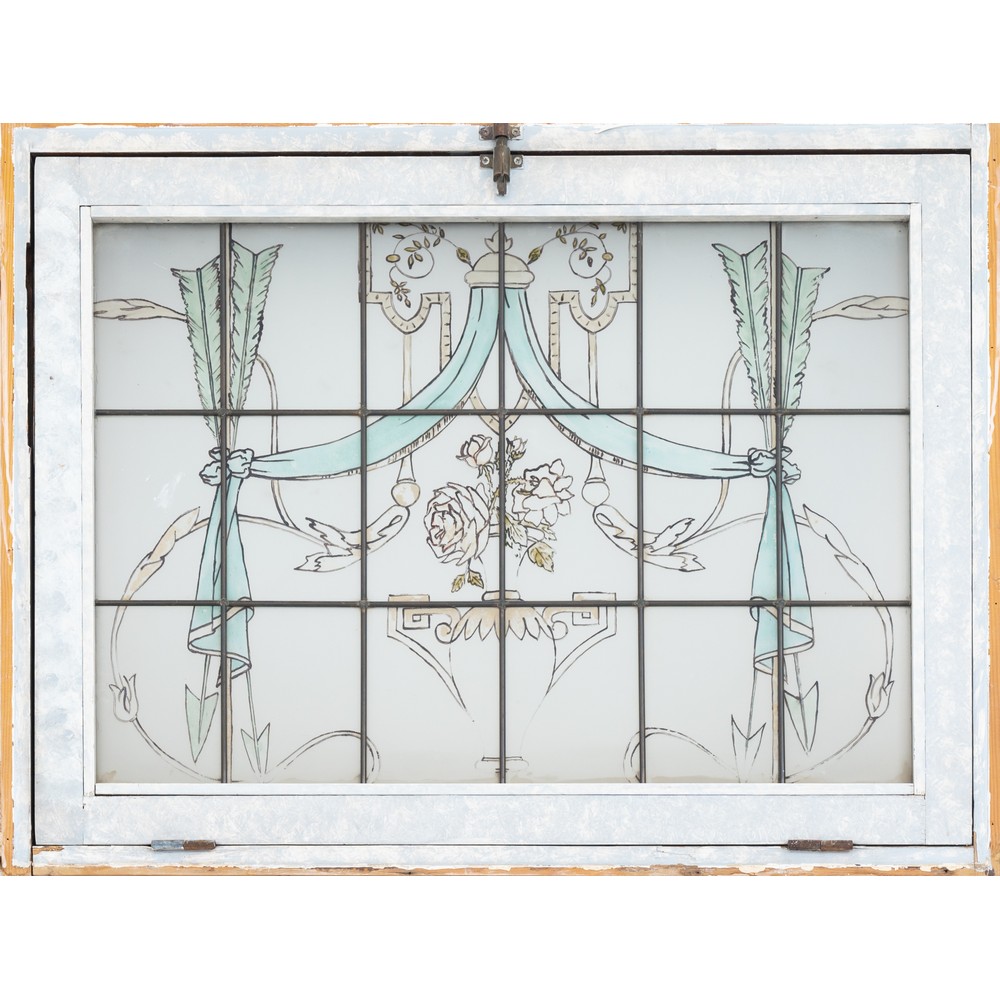 Finestra in legno con vetri cattedrale del XIX secolo.