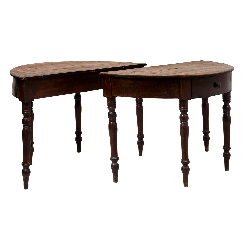 Tavolo a due mezzine con due cassetti in legno di abete.