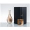 Vaso in vetro con incisioni a rilievo e lumeggiature in oro entro scatola.