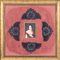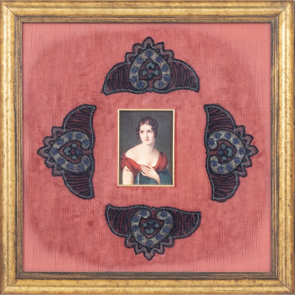 Olio su tela con composizione di microperline in velluto rosso