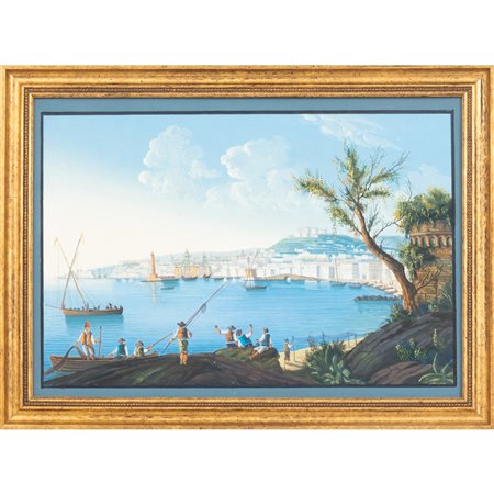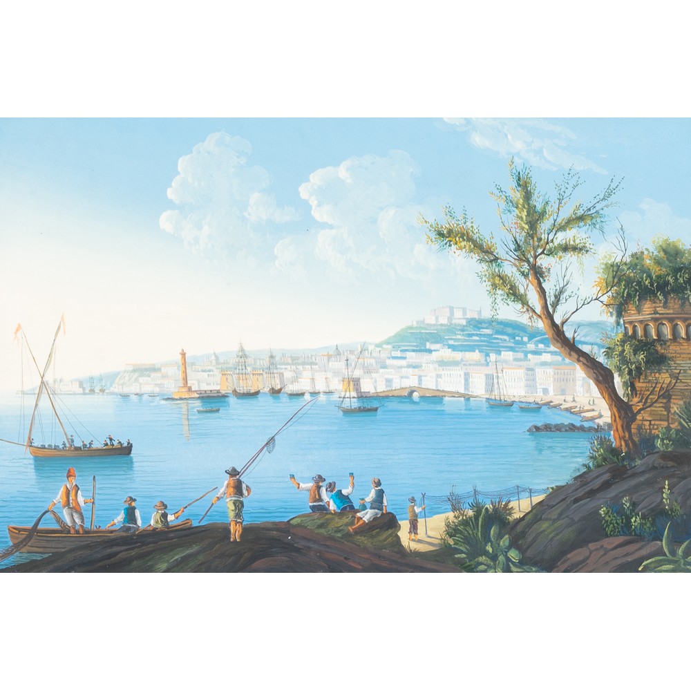 Golfo di Napoli con pescatori e veduta di Castel Sant'Elmo