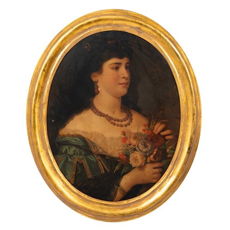 Cornice ovale in legno dorato.