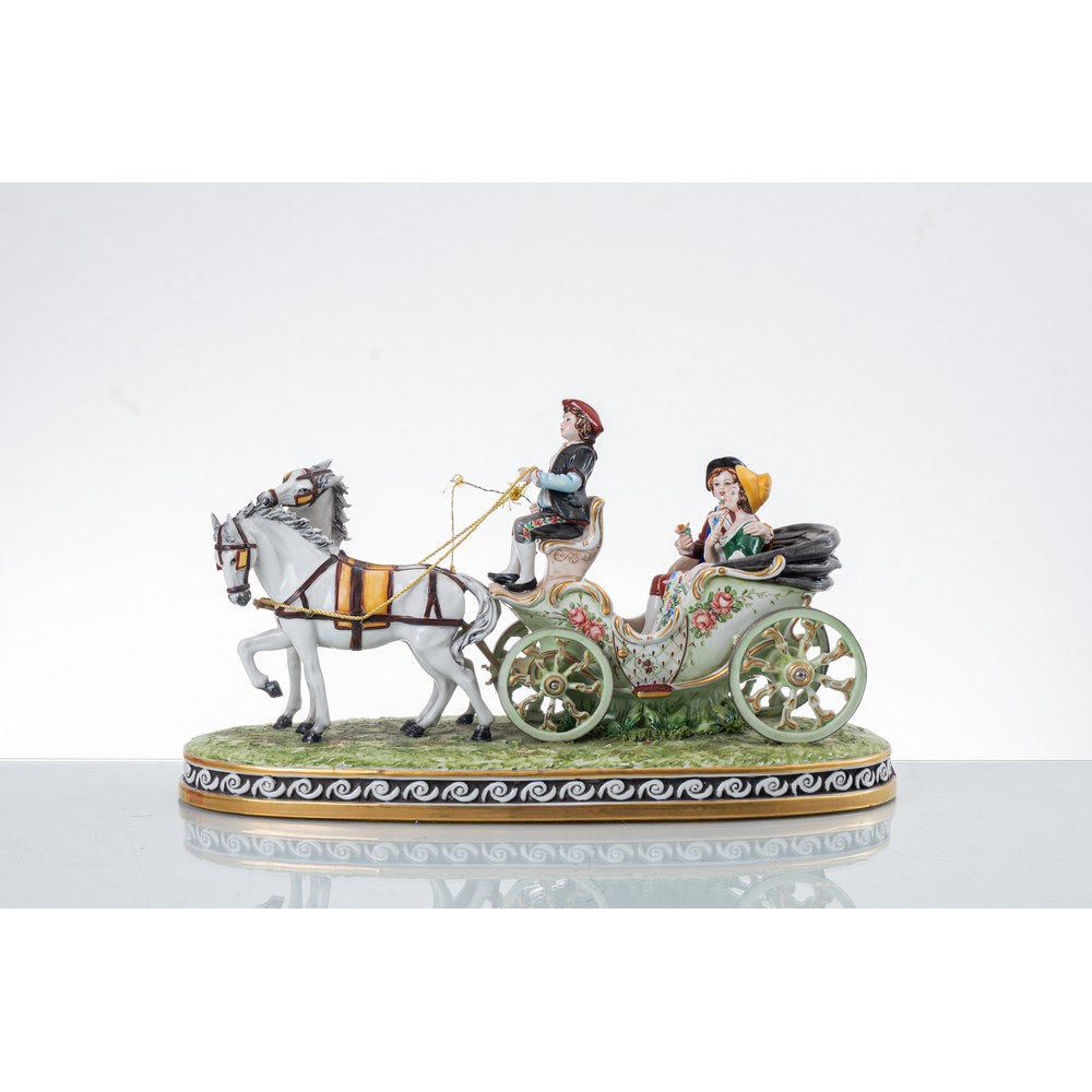 Gruppo in porcellana decorata e dipinta raffigurante "Carrozza con personaggi".