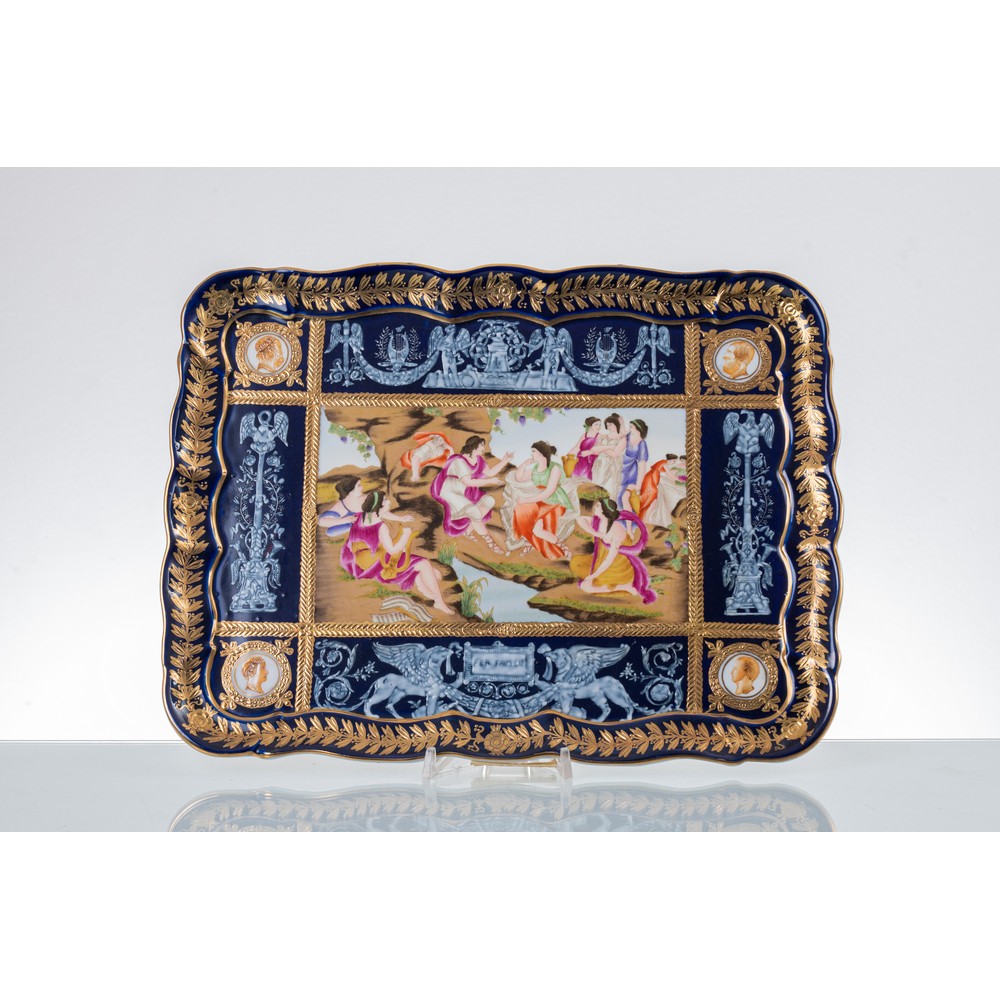 Vassoio in porcellana decorata e dipinta raffigurante "Scena neoclassica".