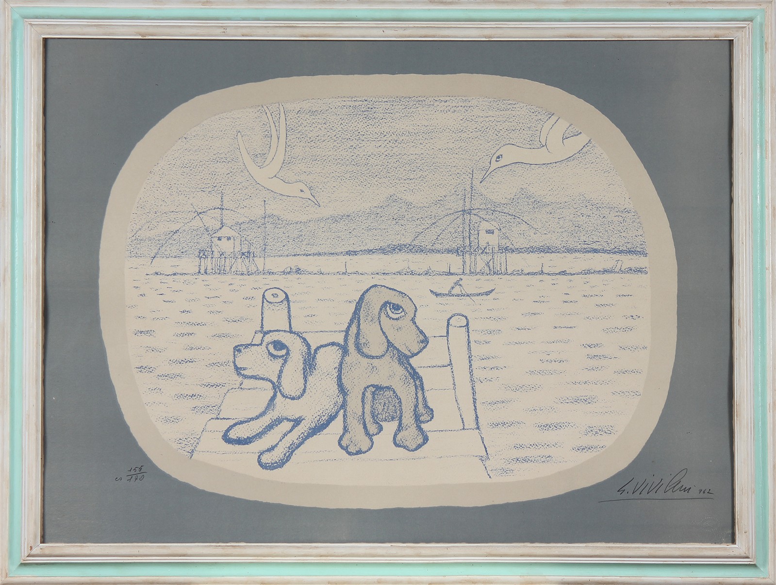 VIVIANI GIUSEPPE (1898 - 1965) Cagnolini. 1962. Litografia. Cm 30,00 x 20,00. 155/170. Tiratura firma e anno in basso a matita. Cornice presente