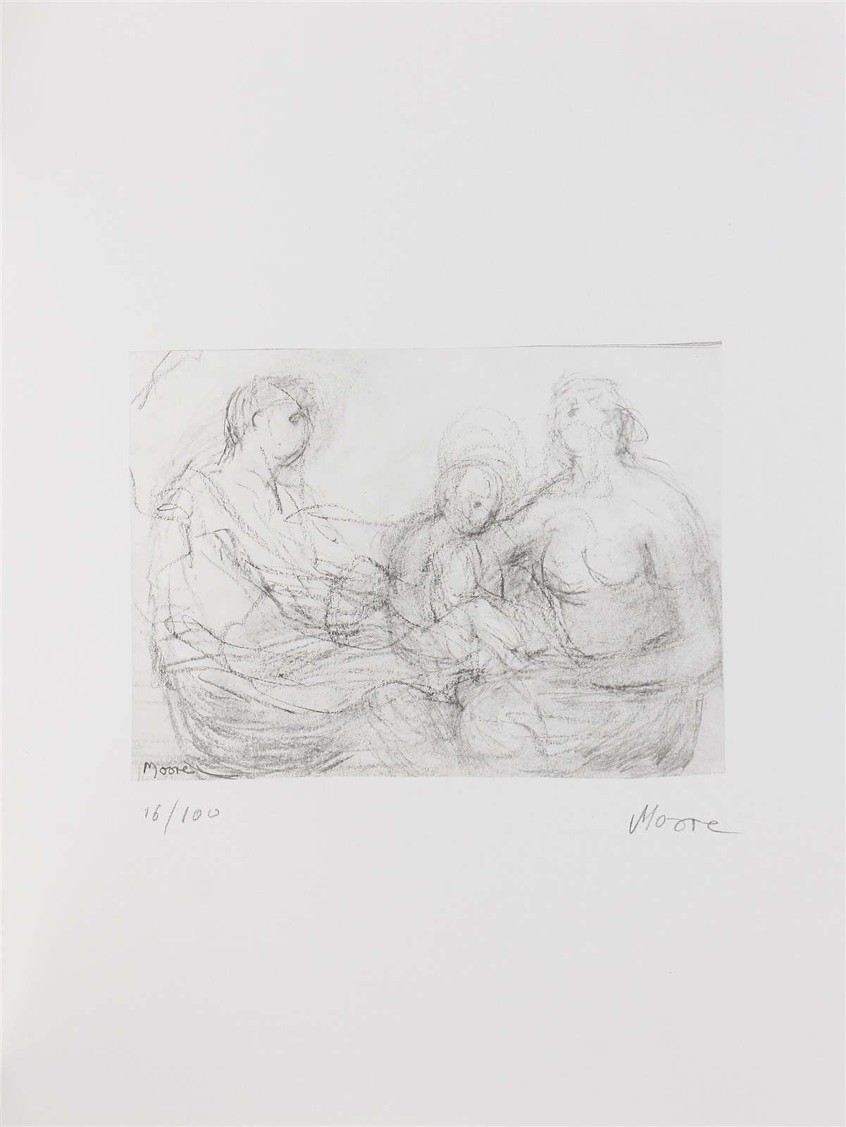 MOORE HENRY (1898 - 1986) Lotto composto da n. 3 grafiche. Fotolitografia. Cm 37,00 x 50,00. Edizione di 100. Tiratura dalla 14 alla 16. Le grafiche sono tutte firmate e numerate a matita in basso.
