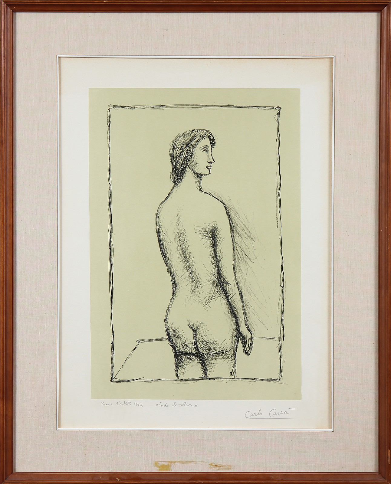 CARRA' CARLO (1881 - 1966) Nudo di schiena. 1962. Litografia. Cm 40,00 x 55,00. P.A. Tiratura, titolo, data e firma in basso a matita. Cornice presente