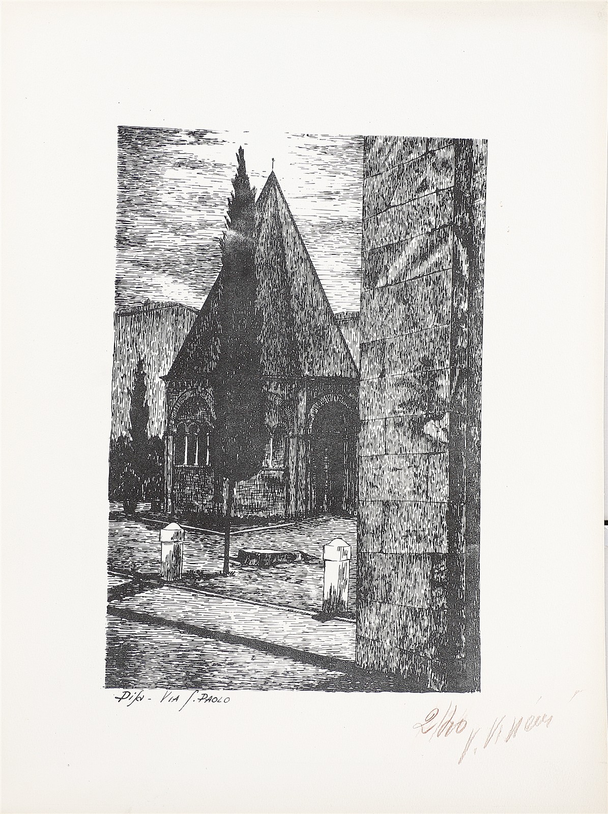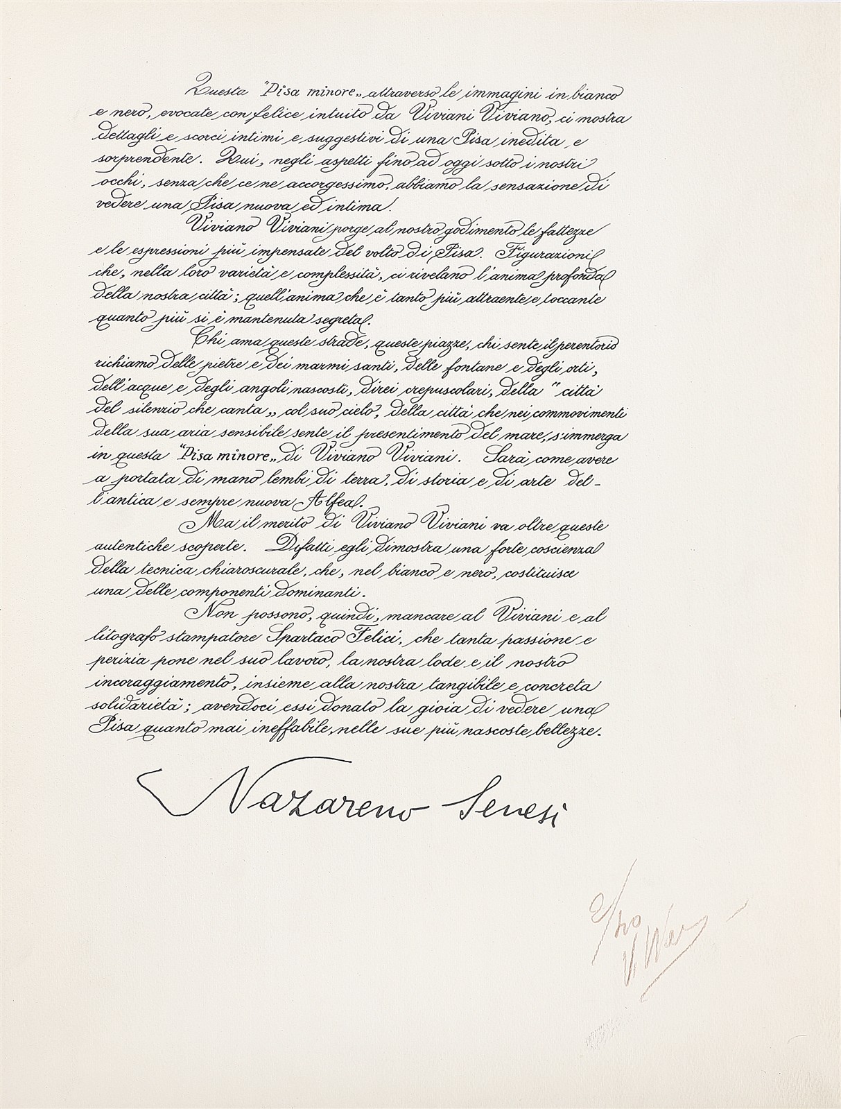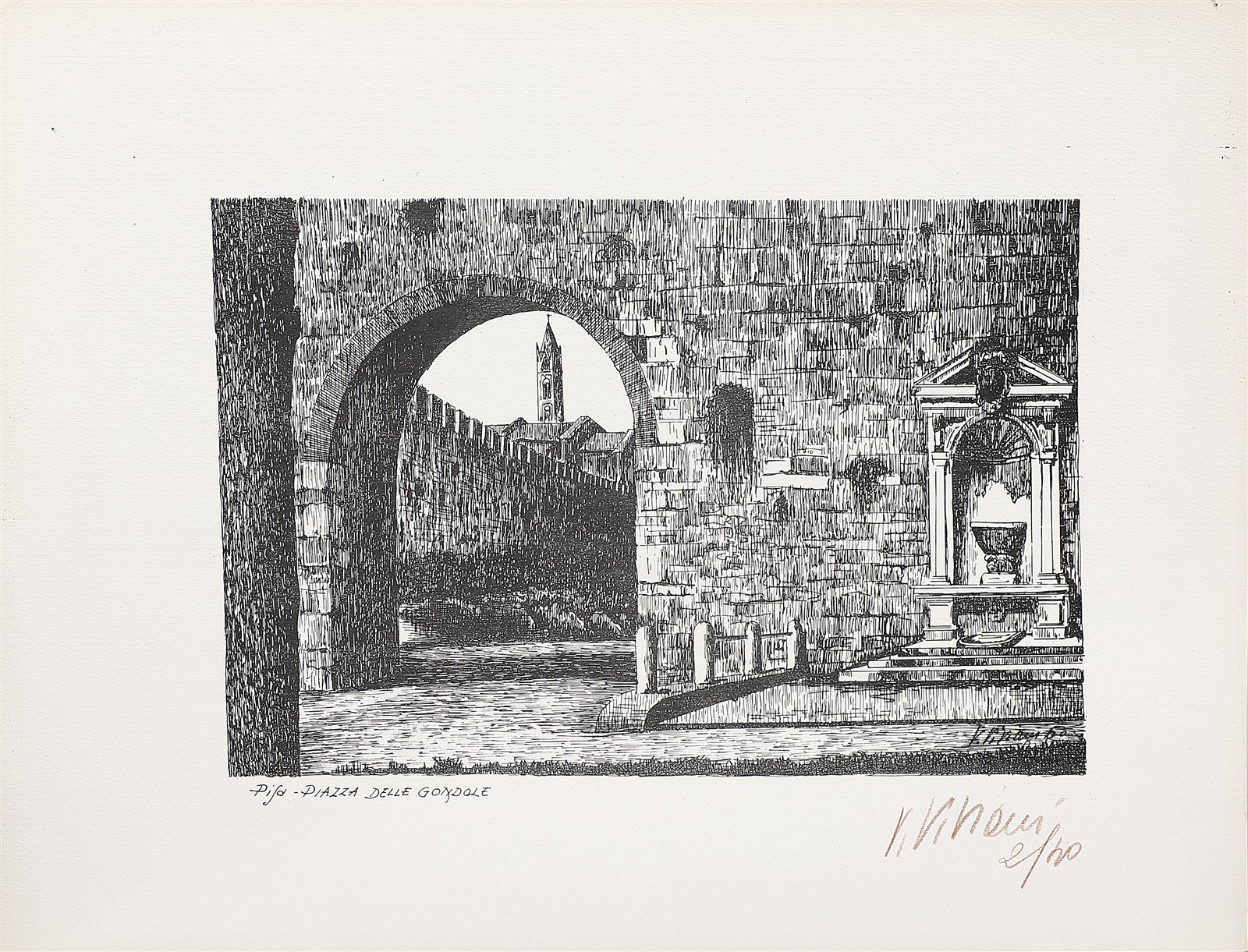 VIVIANI VIVIANO Pisa minore. Litografia (cartella completa). Cm 29,50 x 39,50. 2/40. Cartella comprendente n.8 litografie in bianco e nero firmate e numerate a matita dall'artista. Prefazione di Nazareno senesi. Confezione originale.