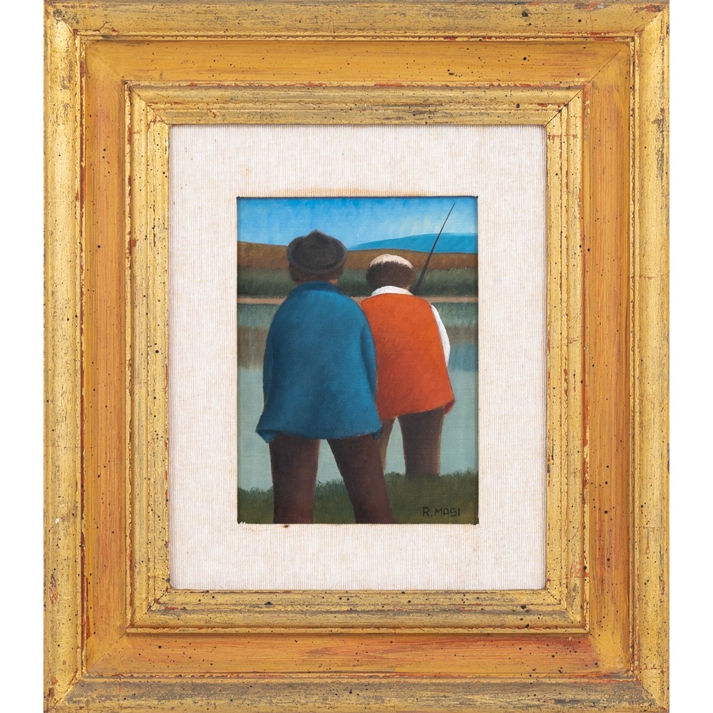 Lot 1259 | ROBERTO MASI, Pescatori, Olio su cartone telato