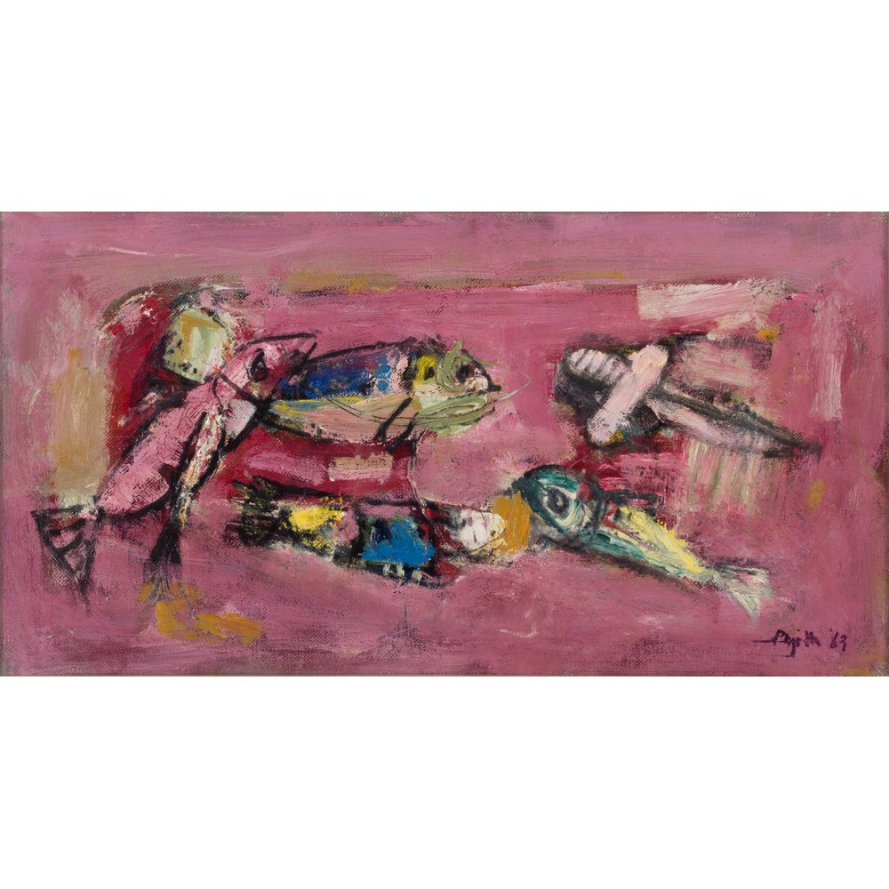 GUIDO PAOLO PAJETTA, Pesci come piccoli aerei, Olio su tela