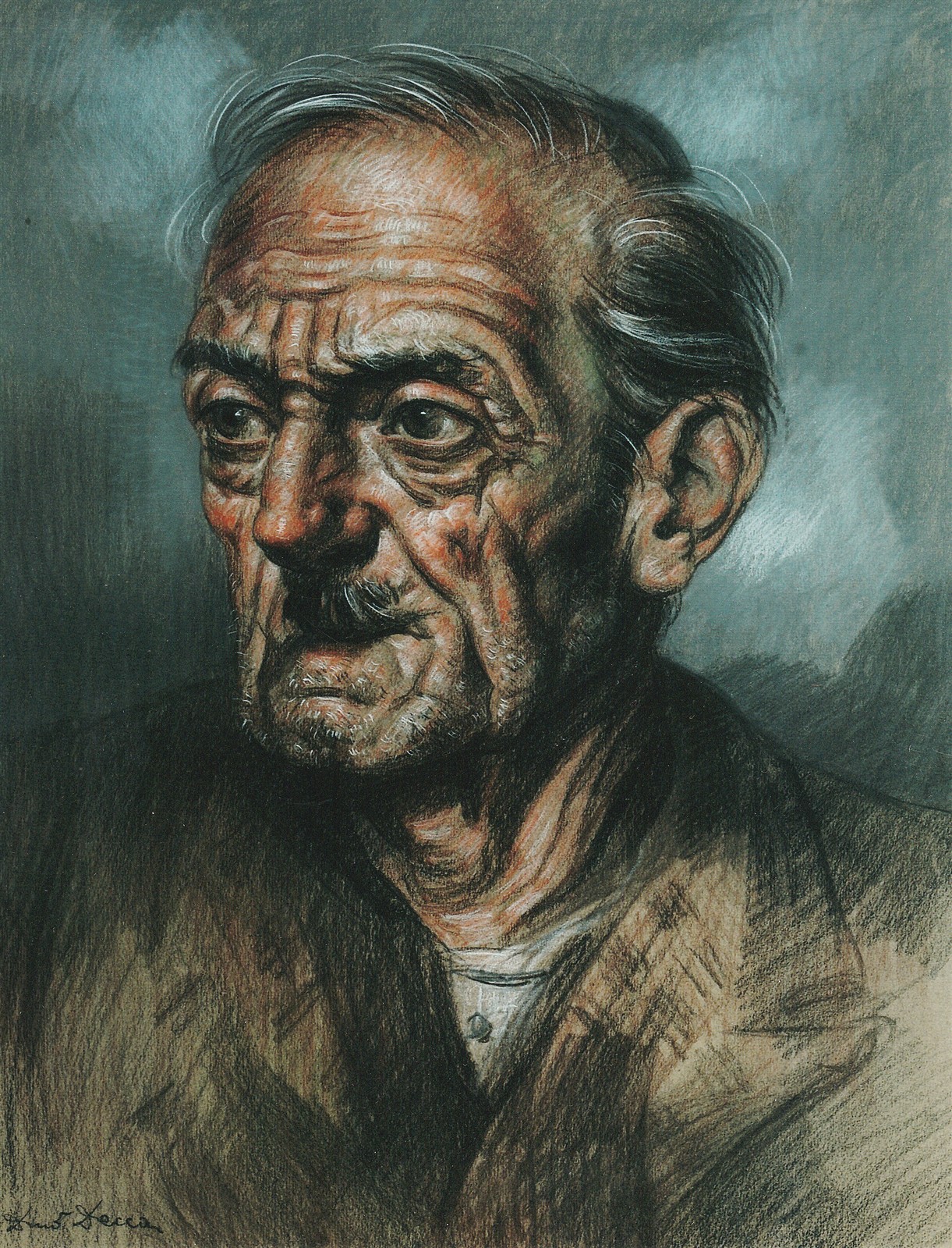 DECCA DINO (1935 - 2005) Nicola da Sabbio Chiese. Pastello su carta. Cm 49,00 x 39,00. Firma in basso a sinistra.