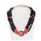 COLLANA a 3 fili di sfere corallo e onice, susta in argento
