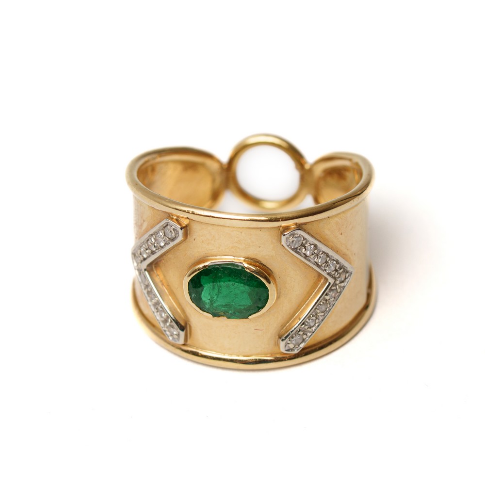 ANELLO in oro giallo 18 KT con brillanti e smeraldo