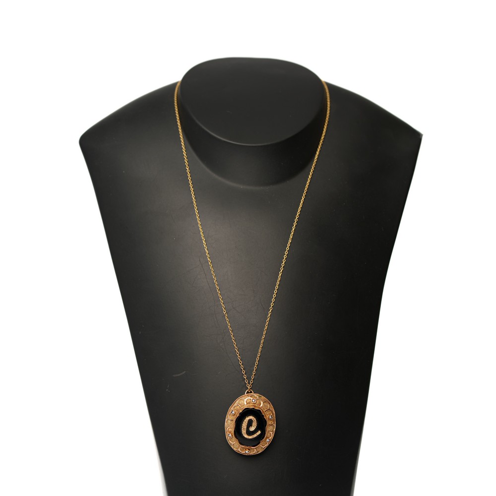 COLLANA con ciondolo portafoto in oro giallo 9 KT e 18 KT con onice e microperline (g. 12,50).