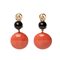 ORECCHINI in oro giallo 18 KT con bottoni in corallo, sfere in onice e zirconi (g. 25,20).