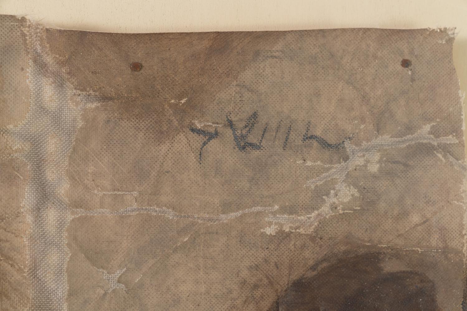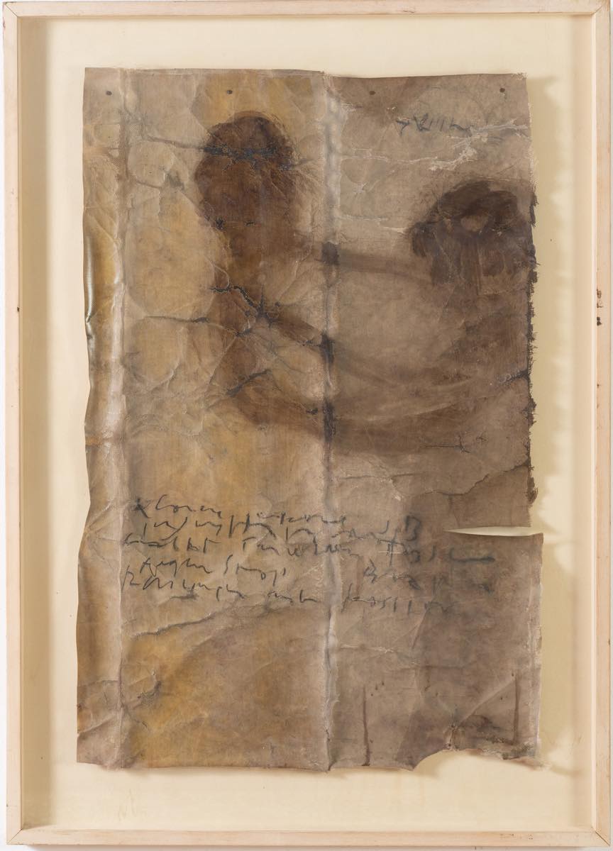 Cera e bitume su telone, reca al retro timbro dell'artista e etichetta con numero di inventario 1-BOL2000 e firma, H cm 90x56 - con cornice H cm 106x75,5