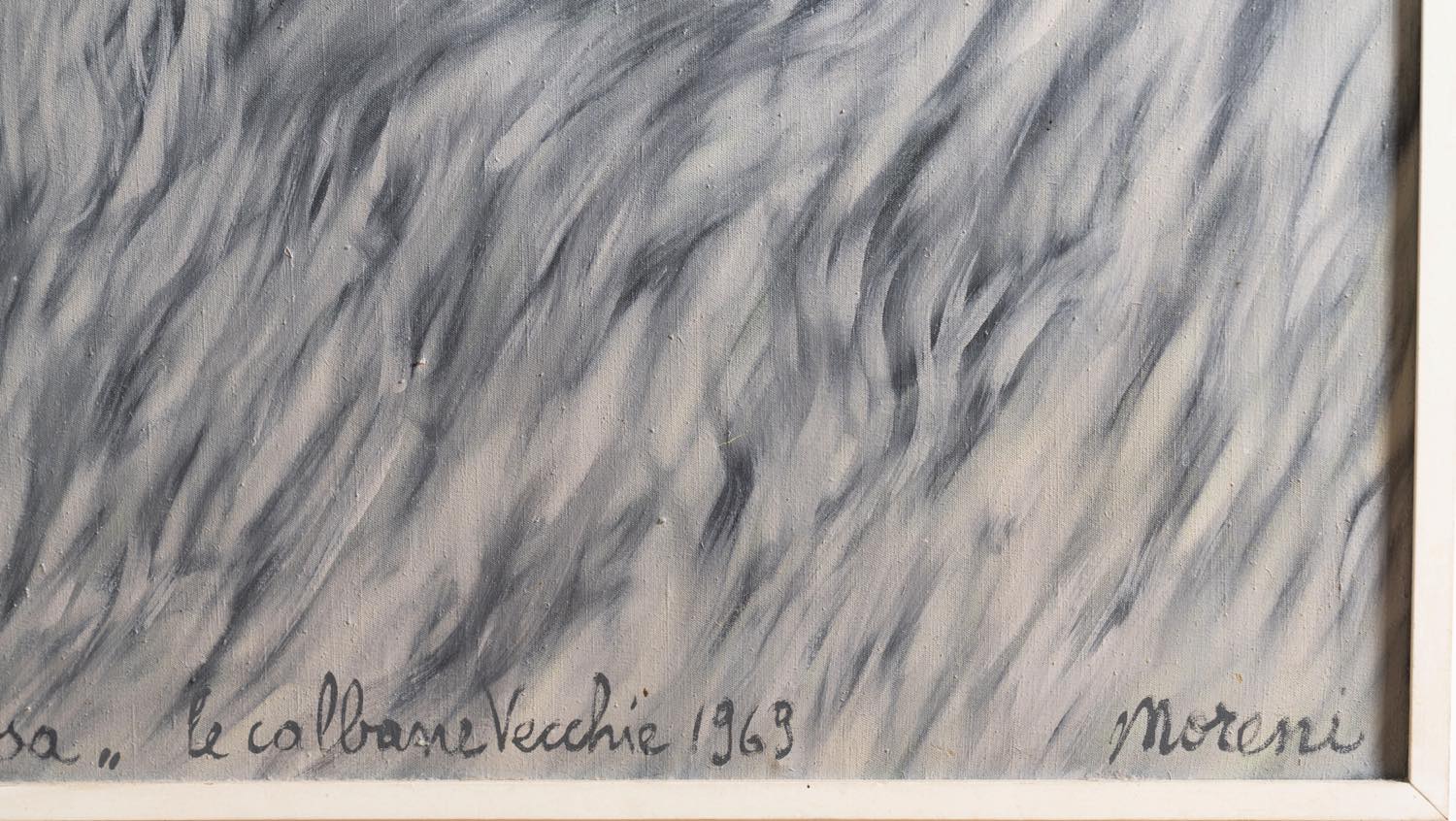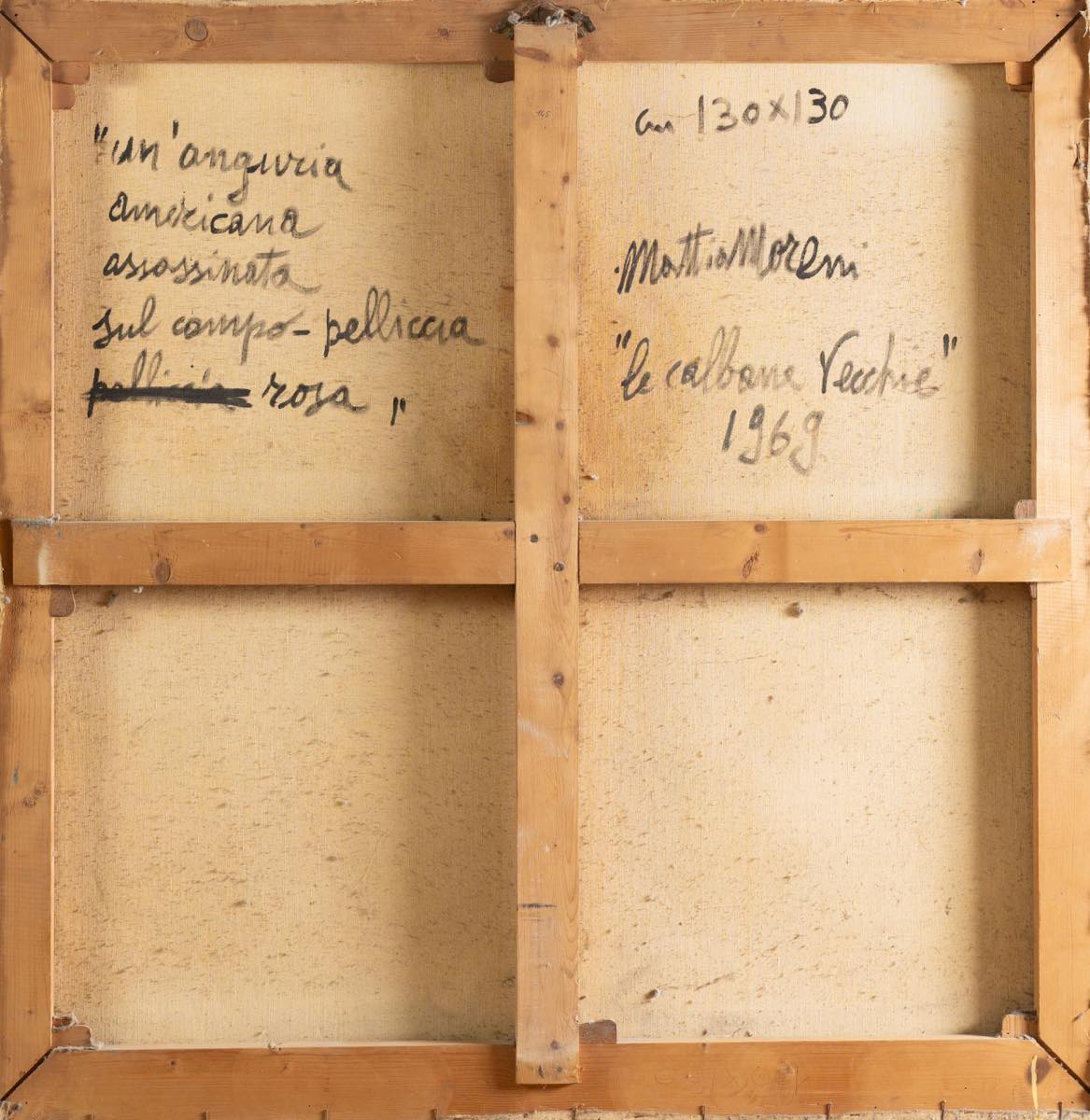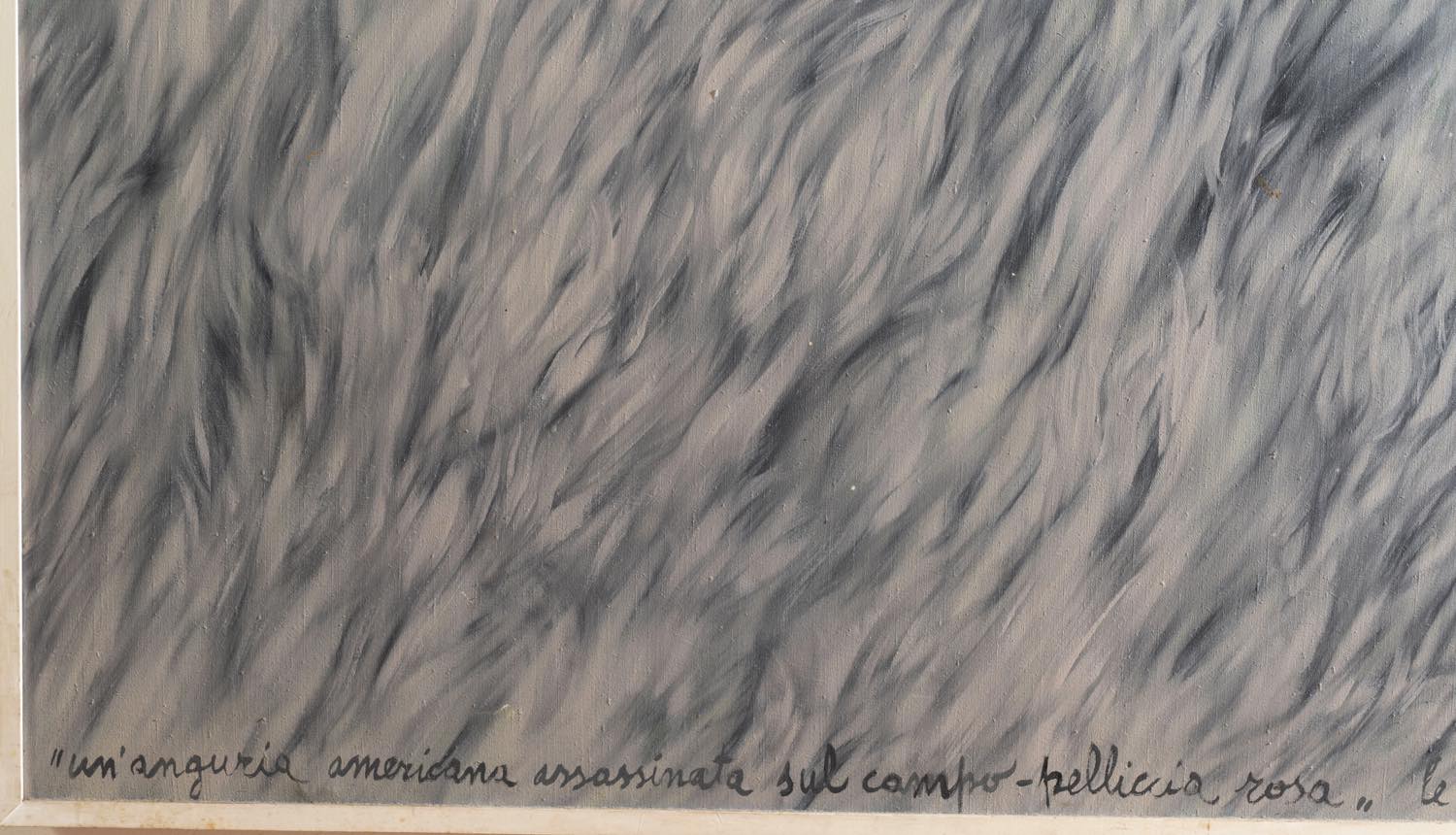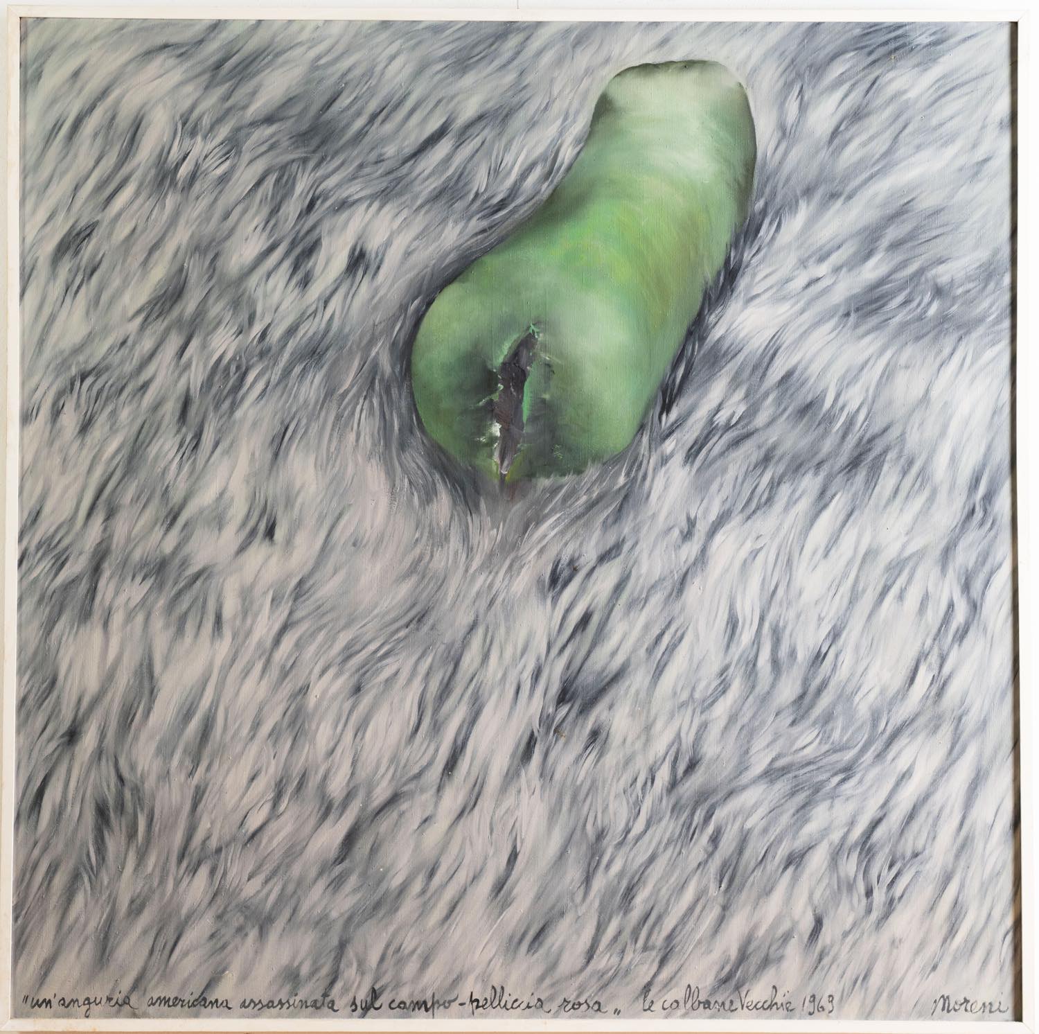 Mattia Moreni (Pavia 1920 - Brisighella 1999), "Un'anguria americana assassinata sul campo - pelliccia rosa" dalla serie "Le calbane vecchie", 1969.