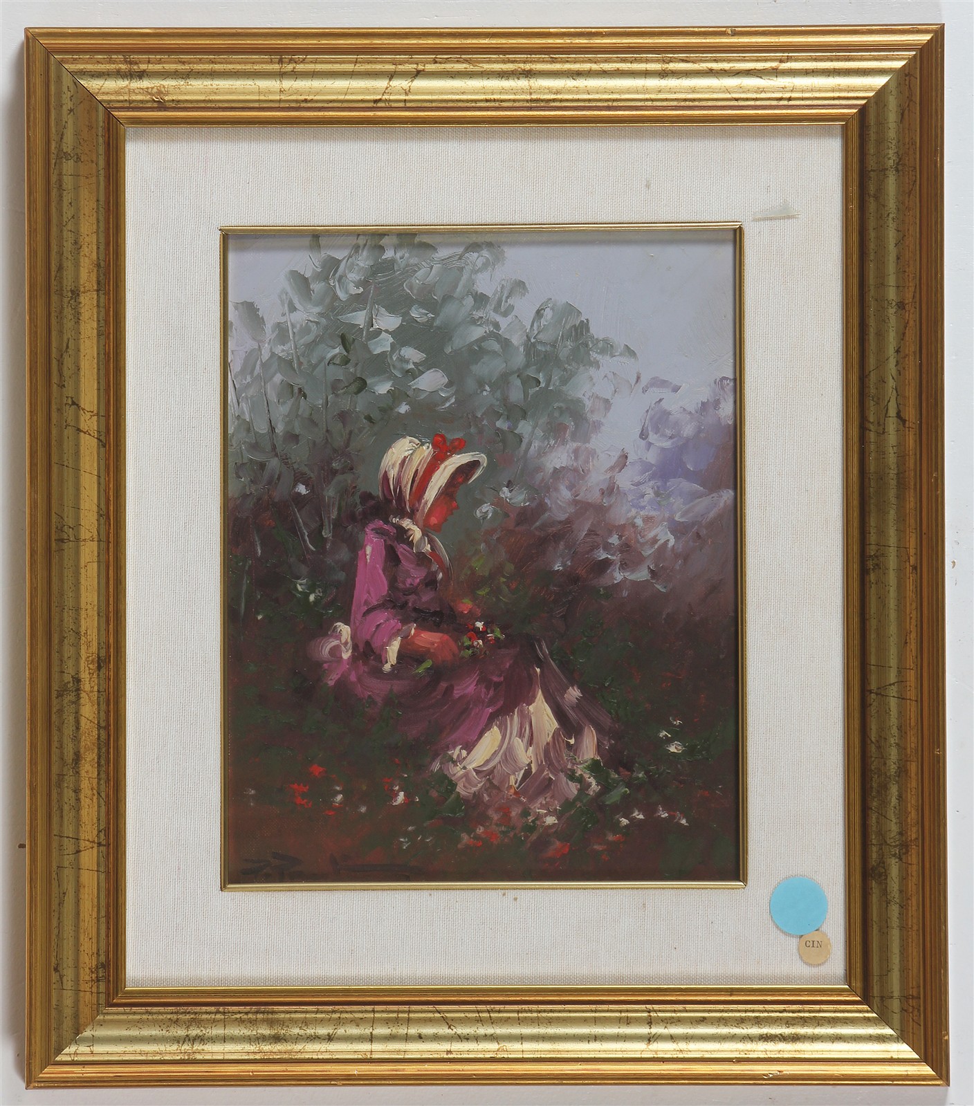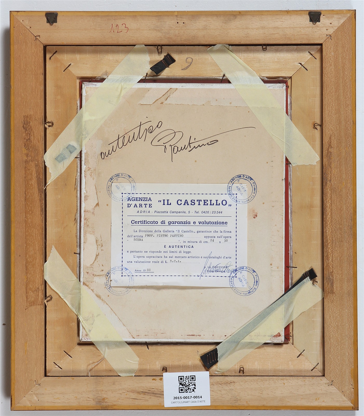 PANTINO PIETRO (n. 1941) Scena. Olio su tela . Cm 30,00 x 24,00. Firma in basso a sinistra. Al retro firma e cartiglio di garanzia e valutazione con timbro a cura dell' Agenzia d'Arte Il Castello, Adria. Autentica su fotografia a cura dell'Agenzia d'Arte il Castello, Adria. Cornice presente