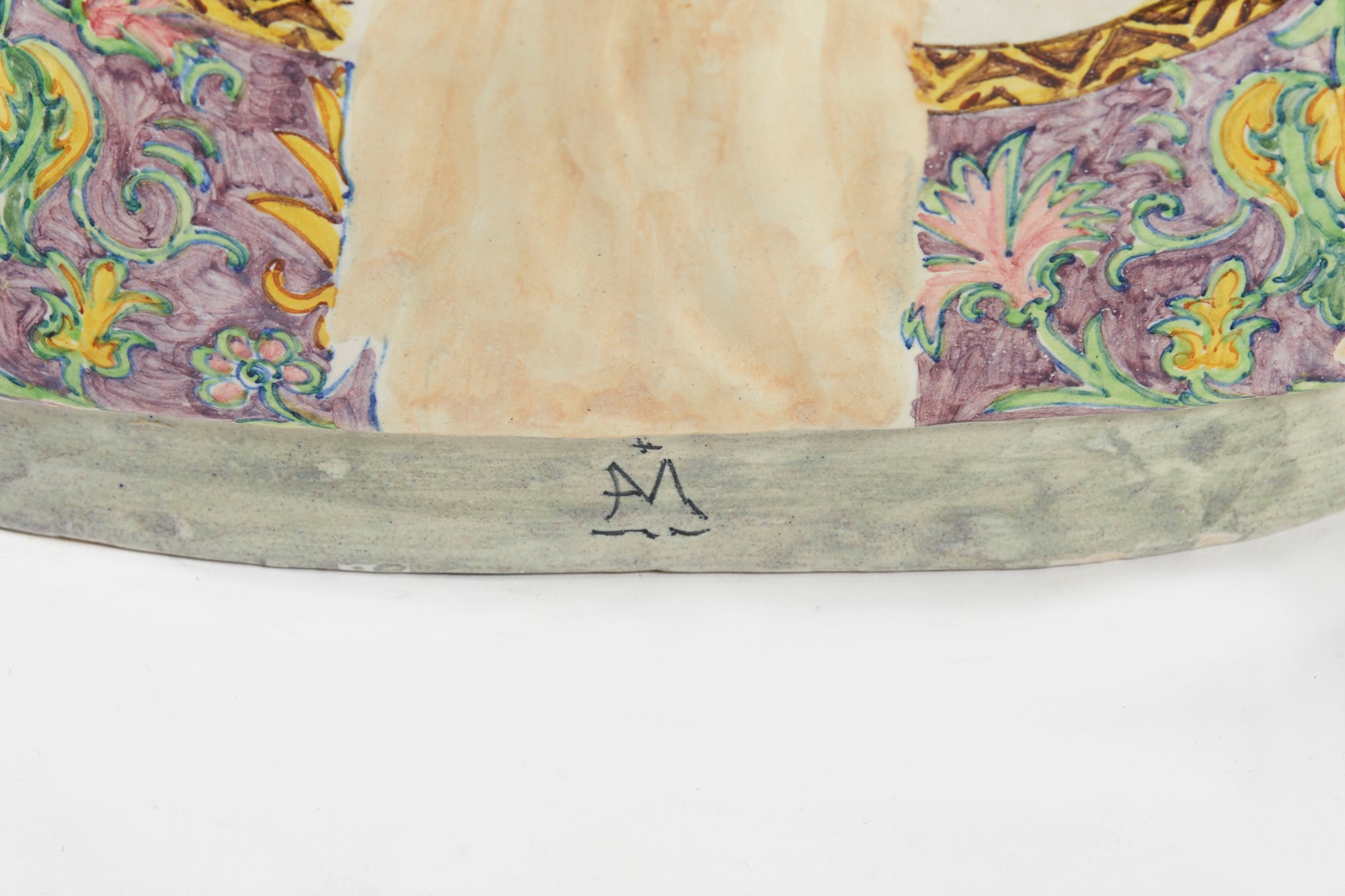 MANIFATTURA MINGHETTI "Laura". Ceramica policroma. XX secolo. Cm 27x28x10,5. Al retro reca marchio AM.