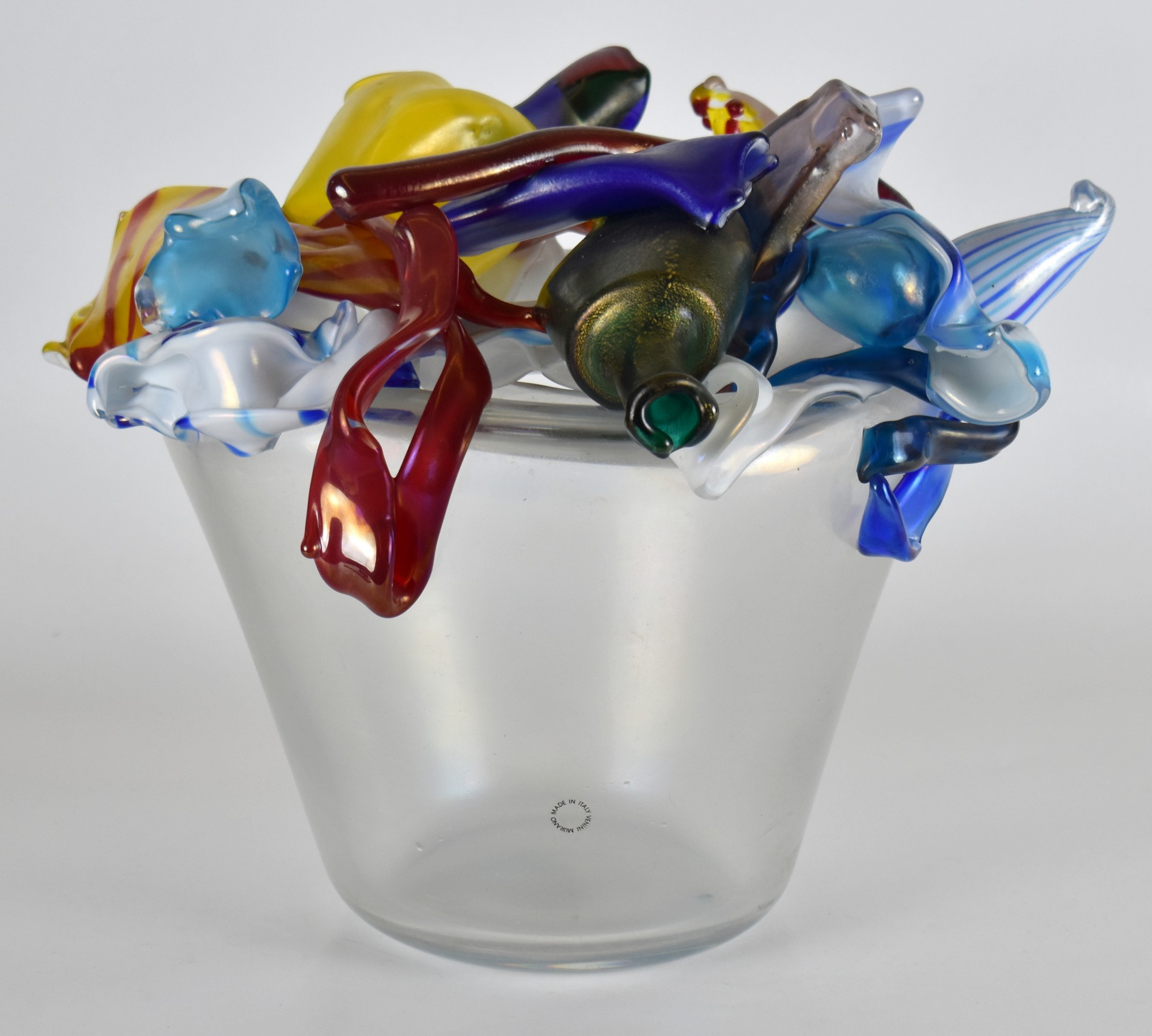 vetro iridato con applicazione di ritagli di lavorazione in vetro policromo 1992