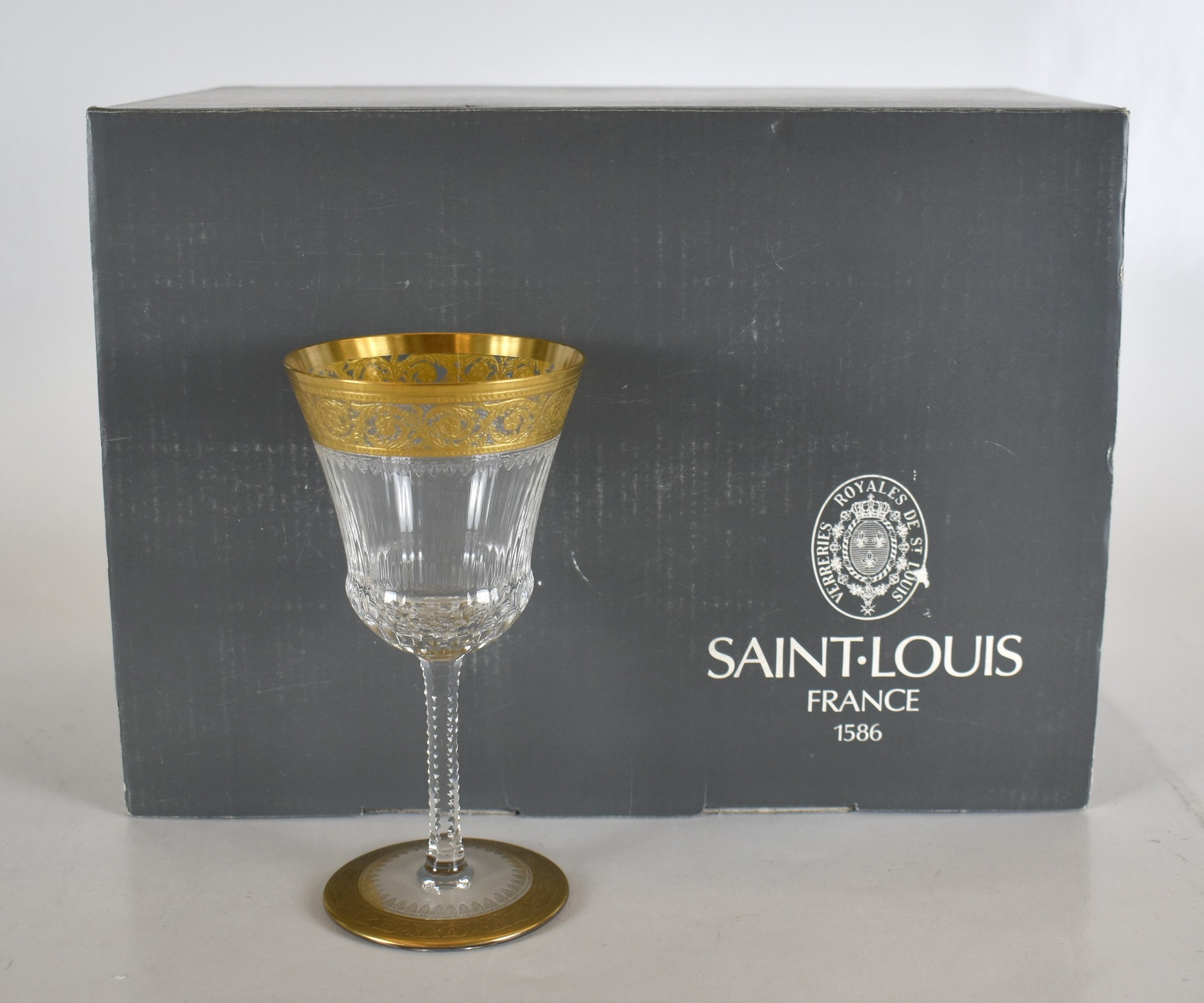 set di 18 bicchieri in cristallo molato con bordure in oro