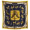 HERMES Foulard in seta con stampa di cavalieri samurai sullo sfondo blu,...