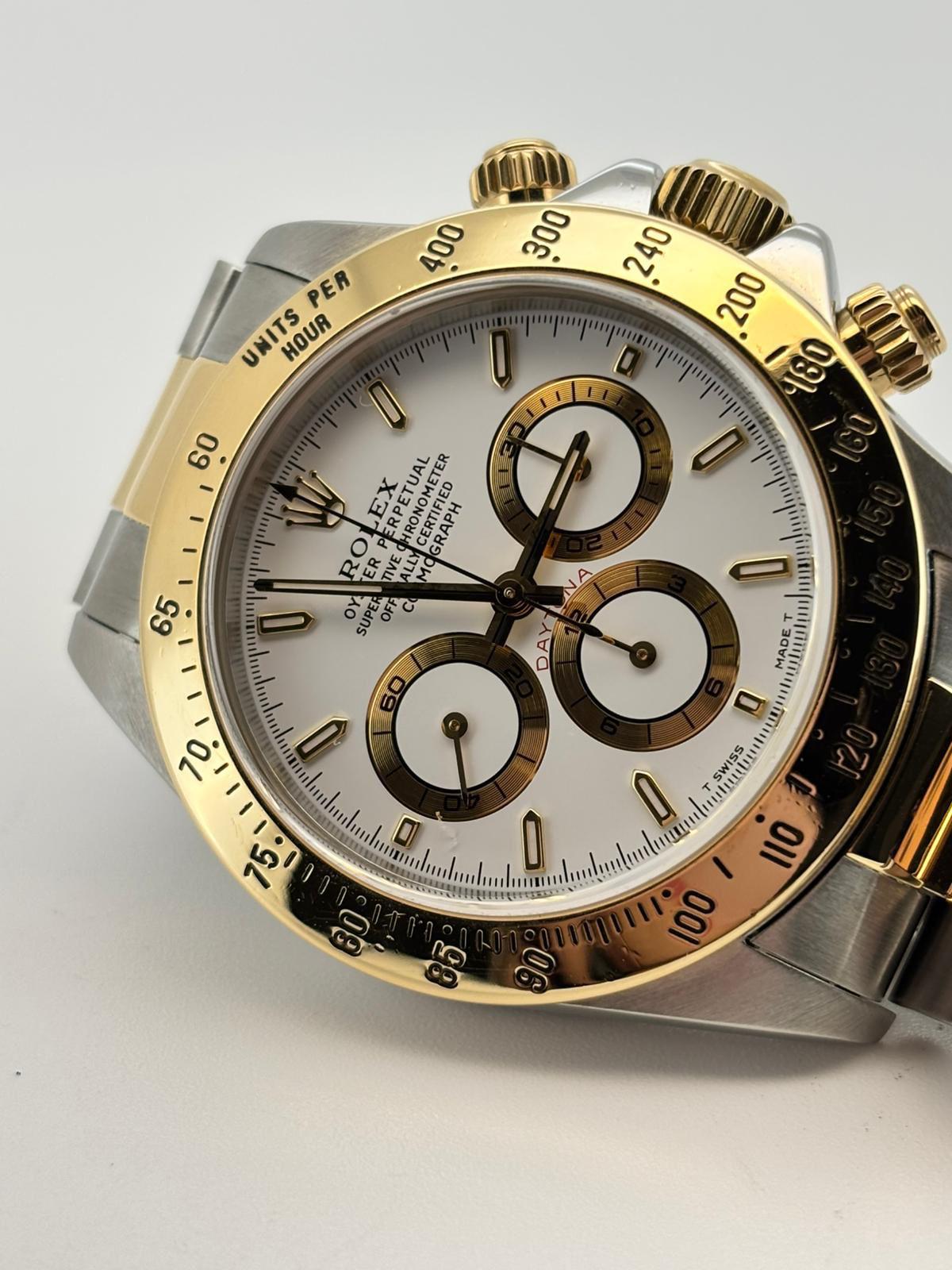 Marca Rolex Modello (Orologio) Daytona Numero di referenza 16523 Carica Automatico Anno 1998 Materiale della cassa Oro/Acciaio Materiale cinturino Oro/acciaio Corredo documenti originali, no box Carica Automatico Cassa Materiale della cassa Oro/Acciaio Diametro 40 mm Impermeabile 10 ATM Materiale lunetta Oro giallo Vetro Vetro zaffiro Cinturino Materiale cinturino Oro/acciaio Colore cinturino Oro/acciaio Chiusura Déployante Materiale chiusura Oro/Acciaio Quadrante bianco - COMMISSIONE D’ASTA 25%
