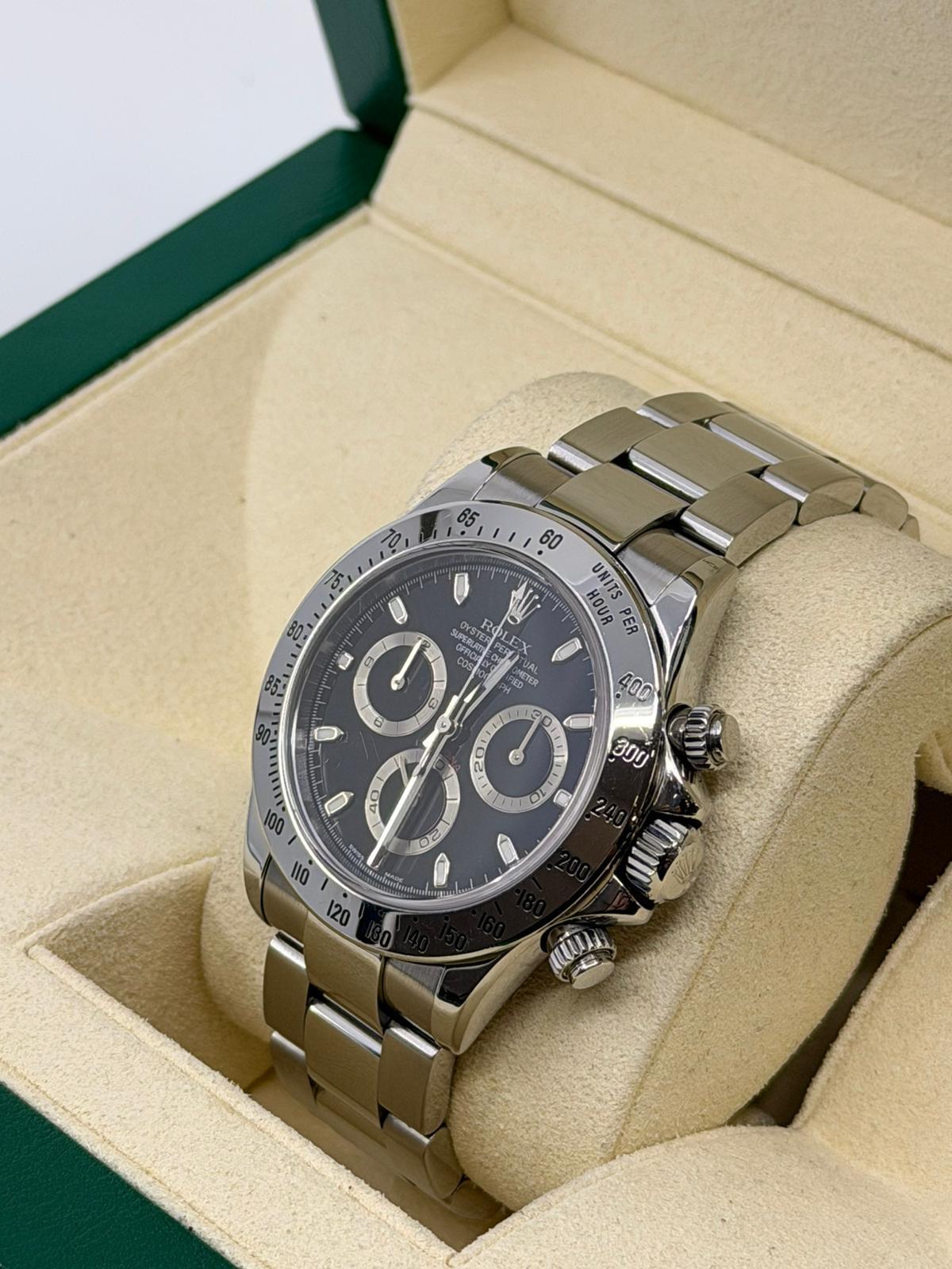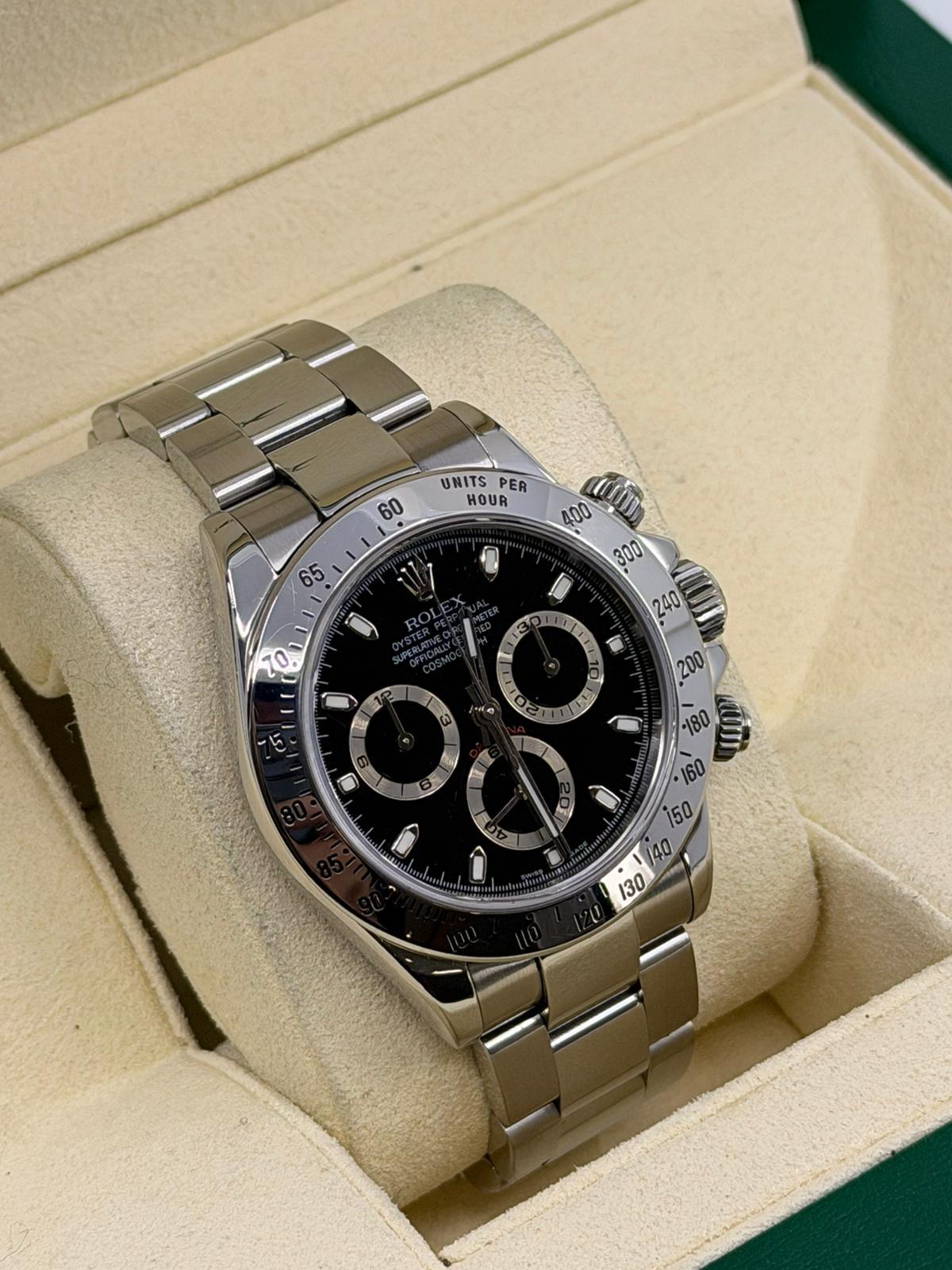 Marca Rolex Modello (Orologio) Daytona Numero di referenza 116520 Carica Automatico Materiale della cassa Acciaio Materiale cinturino Acciaio Anno di produzione 2007 anno approssimativo documenti originali Rolex, no box Carica Automatico Cassa Materiale della cassa Acciaio Diametro 40 mm Impermeabile 10 ATM Materiale lunetta Acciaio Vetro Vetro zaffiro Quadrante Nero Cinturino chiusura lunga Materiale cinturino Acciaio Colore cinturino Acciaio Chiusura Déployante Materiale chiusura Acciaio - COMMISSIONE D’ASTA 25%
