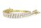 Bracciale tennis in oro giallo 18 carati con una montatura continua di sessantasette diamanti taglio brillante lab-grown. La chiusura è visibilmente marcata "750" per l'oro 18 carati e "D4,50ct" che indica il peso in carati dei diamanti. Il certificato di accompagnamento dell'International Gemological Institute (IGI), datato 10 ottobre 2025, conferma che il bracciale contiene sessantasette diamanti lab-grown con un peso totale stimato di 4,50 carati, classificati D-F in colore, VVS-VS in purezza e finitura Good-Good. Lunghezza: 18.5 cm Peso: 7,66 grammi