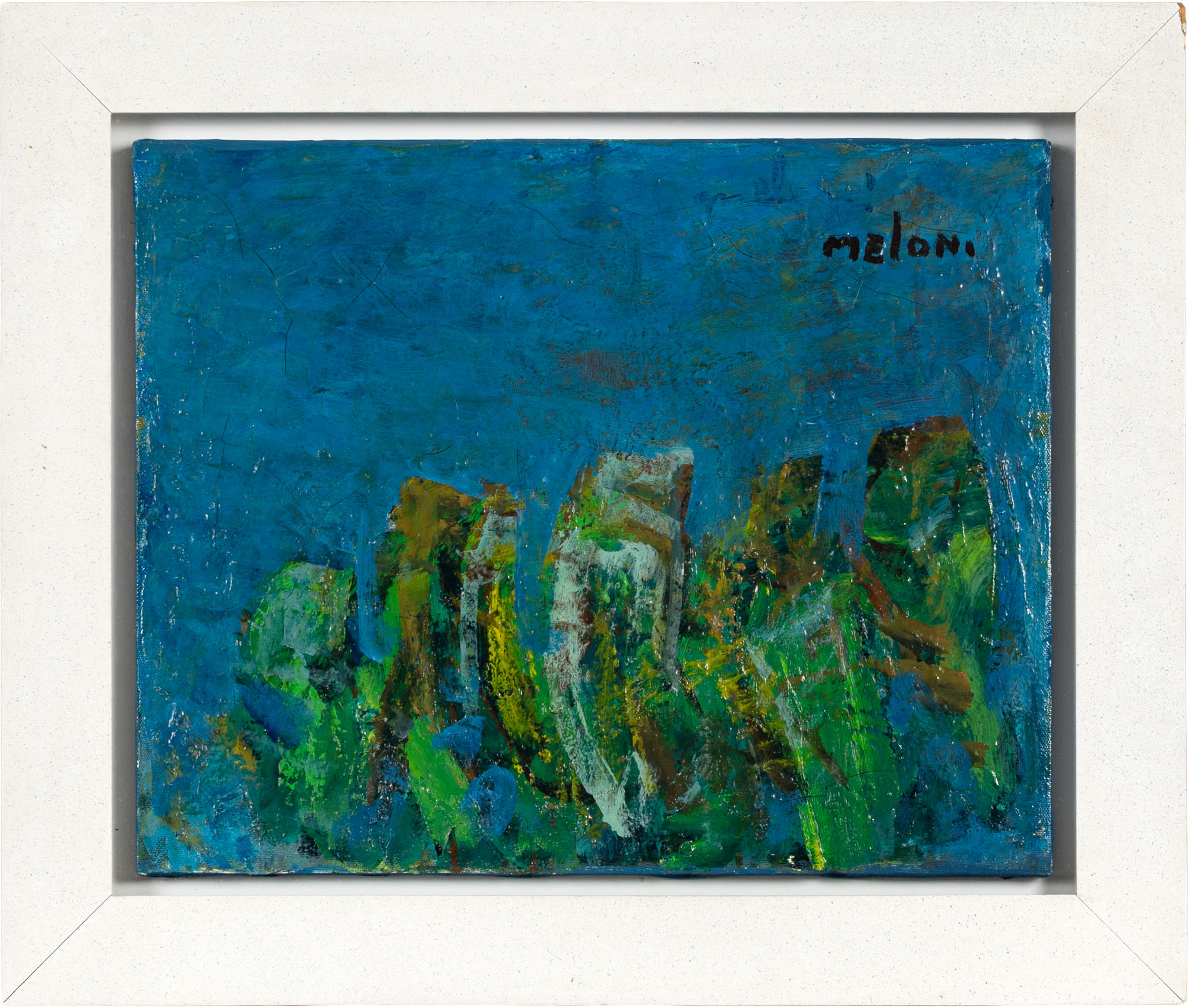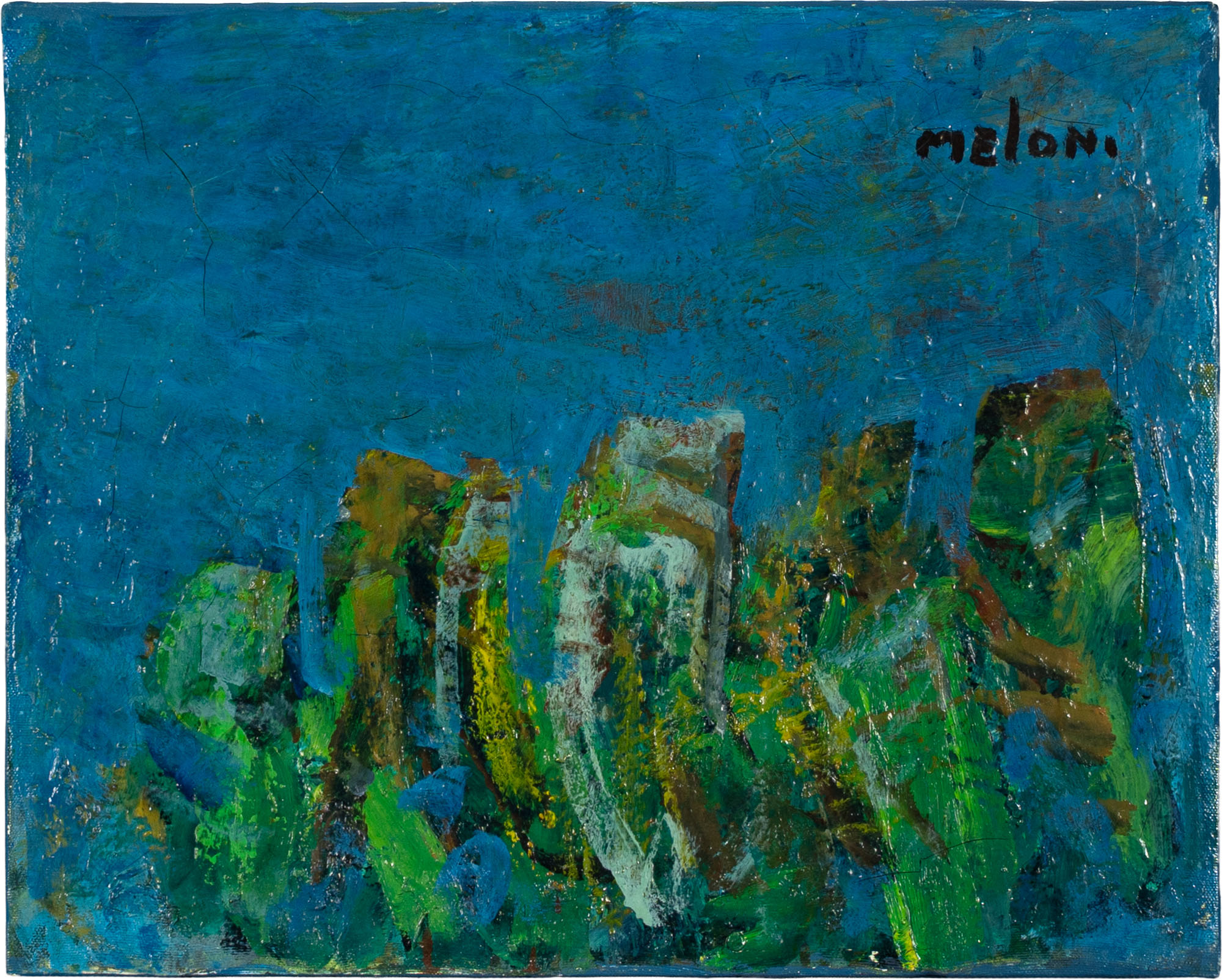 GINO MELONI(1905 - 1989)Granoturco in fiore1982 - 1983Olio su tela39,5 x 49,5 cmFirmato in alto a destraFirma, data, titolo e dedica al retroPROVENIENZA:Collezione privata, Monza