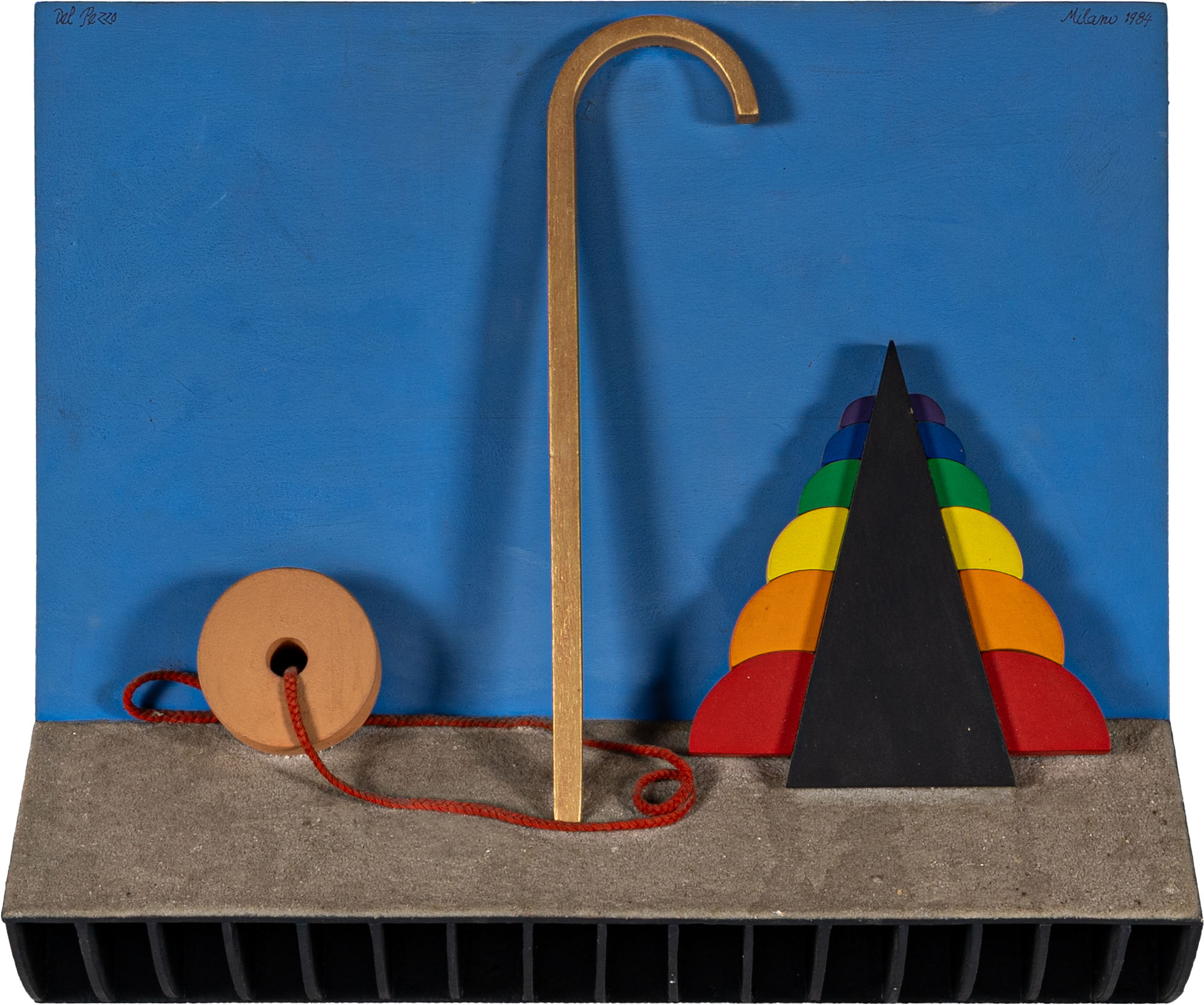 LUCIO DEL PEZZO(1933 - 2020)Senza titolo (Il bastone del pellegrino)1984Tecnica mista e applicazioni su legno30 x 33,8 x 6,5 cmFirmata in alto a sinistra e datata in alto a destraFirma, data e dedica al retroPROVENIENZA:Collezione privata, Milano (ricevuto direttamente dall'artista)