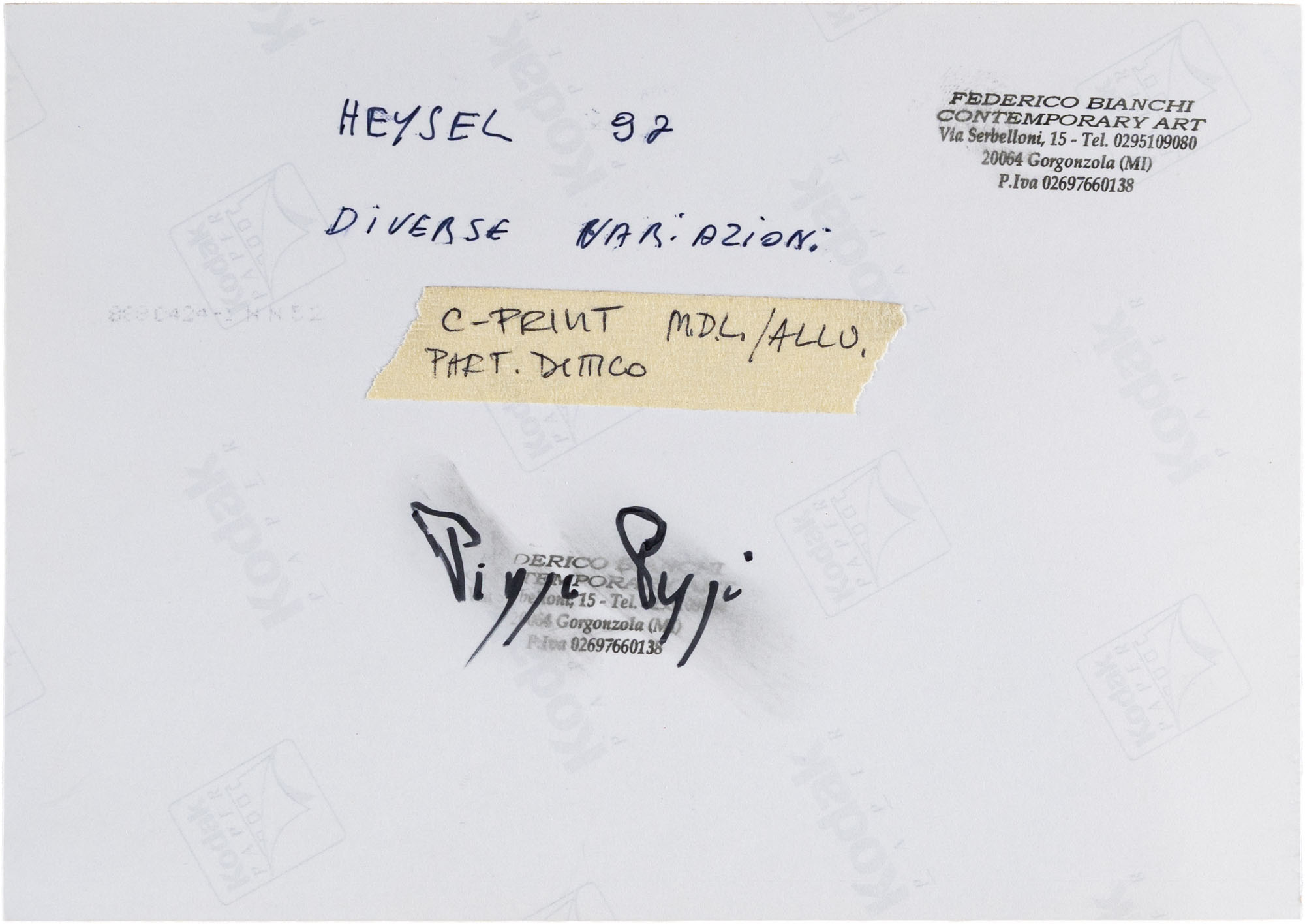 PIERRE POGGI(1954)Heysel (diverse variazioni)1997Fotografia a colori15 x 21,5 cmFirma, data e titolo al retroPROVENIENZA:Galleria Federico Bianchi Contemporary Art, Milano (timbri al retro)Collezione privata, Lecco