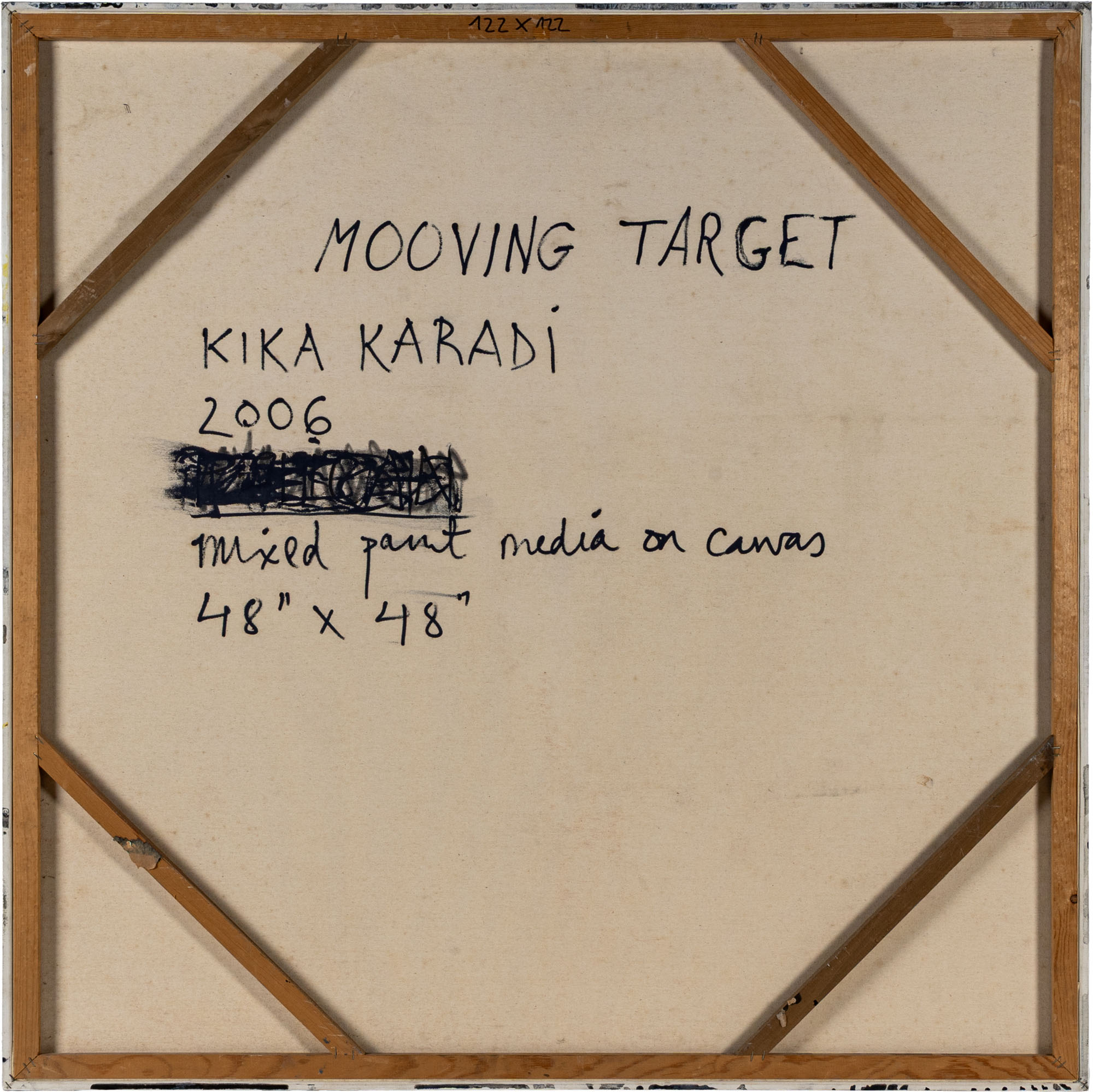KIKA KARADI(1975)Mooving target2006Tecnica mista su tela122 x 122 cmFirma, data e titolo al retroPROVENIENZA:Collezione privata, Milano