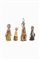 in cartapesta, legno dipinto e stoffe. Raffiguranti alcune maschere della commedia popolare italiana e non: Gioppino; una marionetta indonesiana; una maschera femminile; un cuoco.