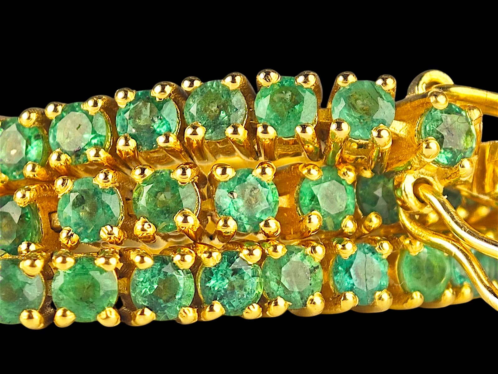 Bracciale in argento IGI report 81J7787025 placcato oro contiene 67 smeraldi naturali della specie Natural Beryl, tagliati in Round Mixed Cut, per un peso complessivo di 4,00 carati. Il colore è verde trasparente e la gemma presenta caratteristiche naturali tipiche degli smeraldi. L’identificazione e la valutazione sono state eseguite secondo gli standard IGI. - COMMISSIONE D'ASTA 25%