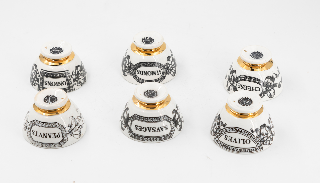 Timbro 'Fornasetti - Milano - Made in Italy' sotto ciascuna ciotola