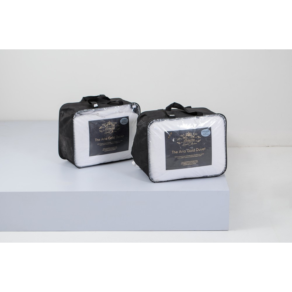 Due piumini di diverse dimensioni “Hotel collection” in piuma e piumino di oca ungherese . Marchio di produzione.