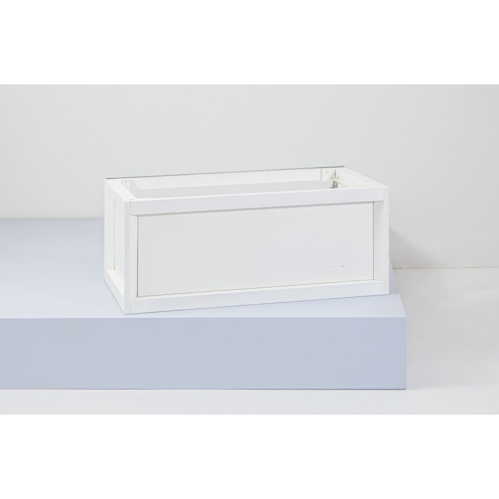 Mobile da bagno sospeso con incasso per lavandino, struttura in legno laccato bianco. Minuterie in metallo.