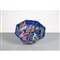 Ciotola ottagonale in porcellana della collezione "Pierres d'Orient et d'Occident" di Hermès, decori policromi su fondo blu. Marchio di produzione.