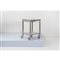 Carrello tecnico in acciaio da servizio su ruote, due ripiani quadrati. Segni di uso.