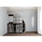 Una cucina realizzata con parte di aereo Boeing 737, lavello interrato Smeg, miscelatore, carrelli da servizio a bordo, parte di finestrini passeggero, cantina frigo. Segni di uso.