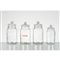 Quattro barattoli in vetro trasparente di altezza differente, corpo cilindrico, coperchio con guarnizione.