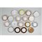 Diciotto piattini da dessert in porcellana bianca con differenti decori policromi, alcuni con bordo in oro e argento. Marchio di produzione.