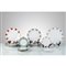 Diciassette piatti di dimensione differente della serie” Variation” e “Les Nacres”, porcellana bianca con decori geometrici verdi, bordeaux e oro. Marchio di produzione.